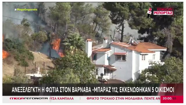 Φωτιά στον Βαρνάβα: Εκκενώνονται Ροδόπολη, Αμυγδαλέζα, Γραμματικό, Σταμάτα και Μικροχώρι