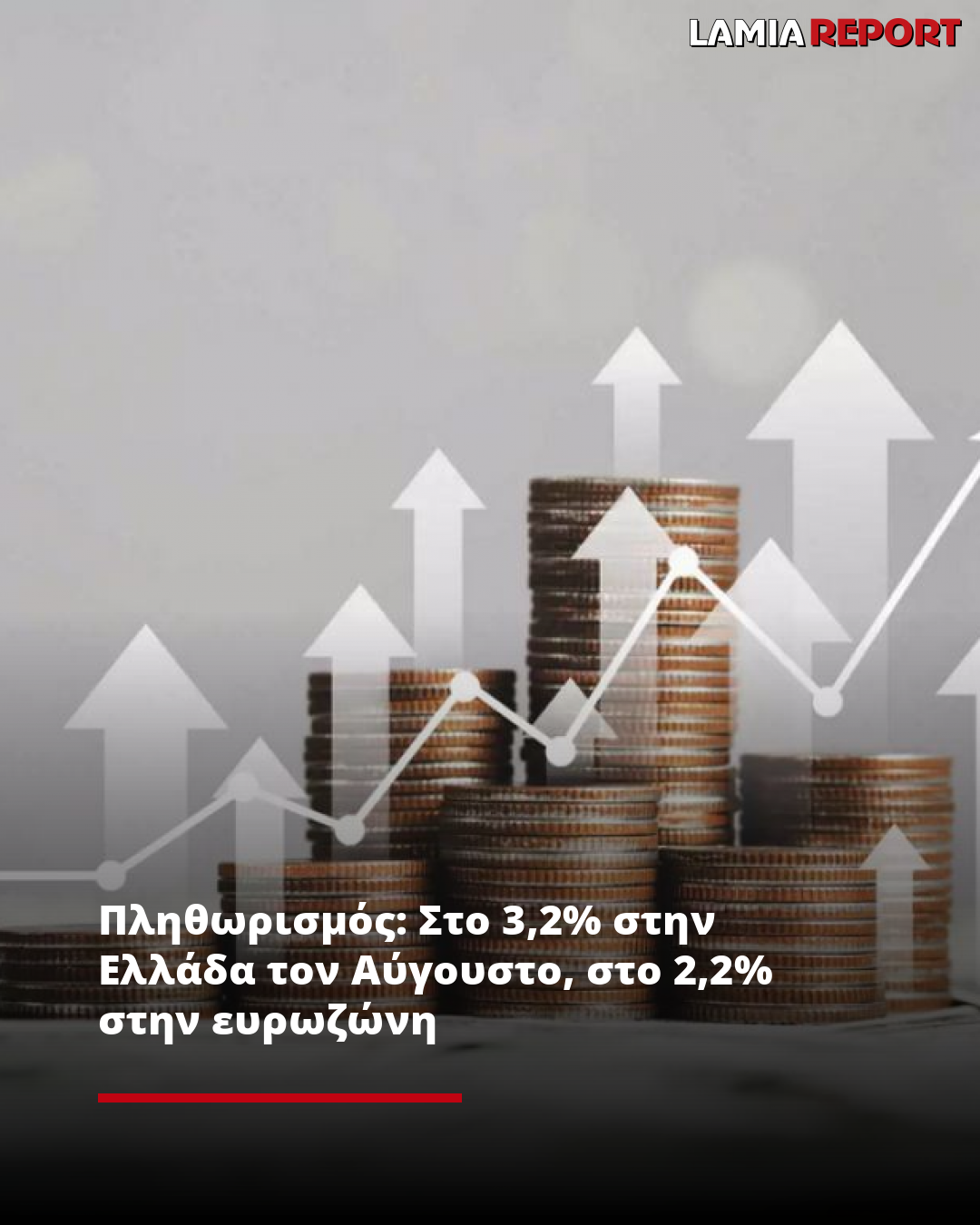 Πληθωρισμός: Στο 3,2% στην Ελλάδα τον Αύγουστο, στο 2,2% στην ευρωζώνη