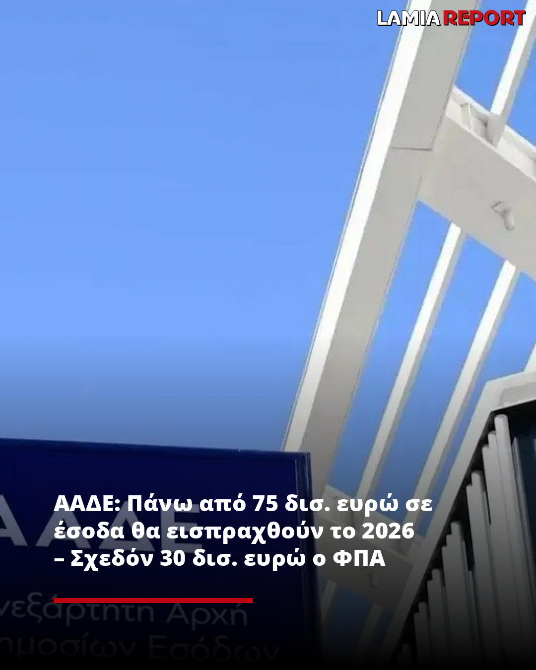 ΑΑΔΕ: Πάνω από 75 δισ. ευρώ σε έσοδα θα εισπραχθούν το 2026 – Σχεδόν 30 δισ. ευρώ ο ΦΠΑ