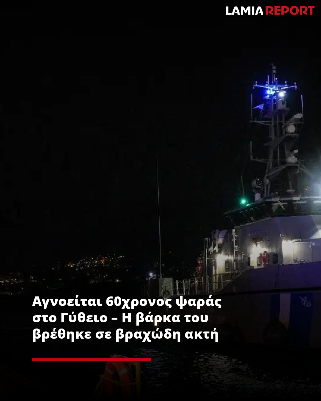 Σε πλήρη εξέλιξη βρίσκονται έρευνες του Λιμενικού ανοιχτά του Γυθείου για του 60χρονο που αγνοείται.