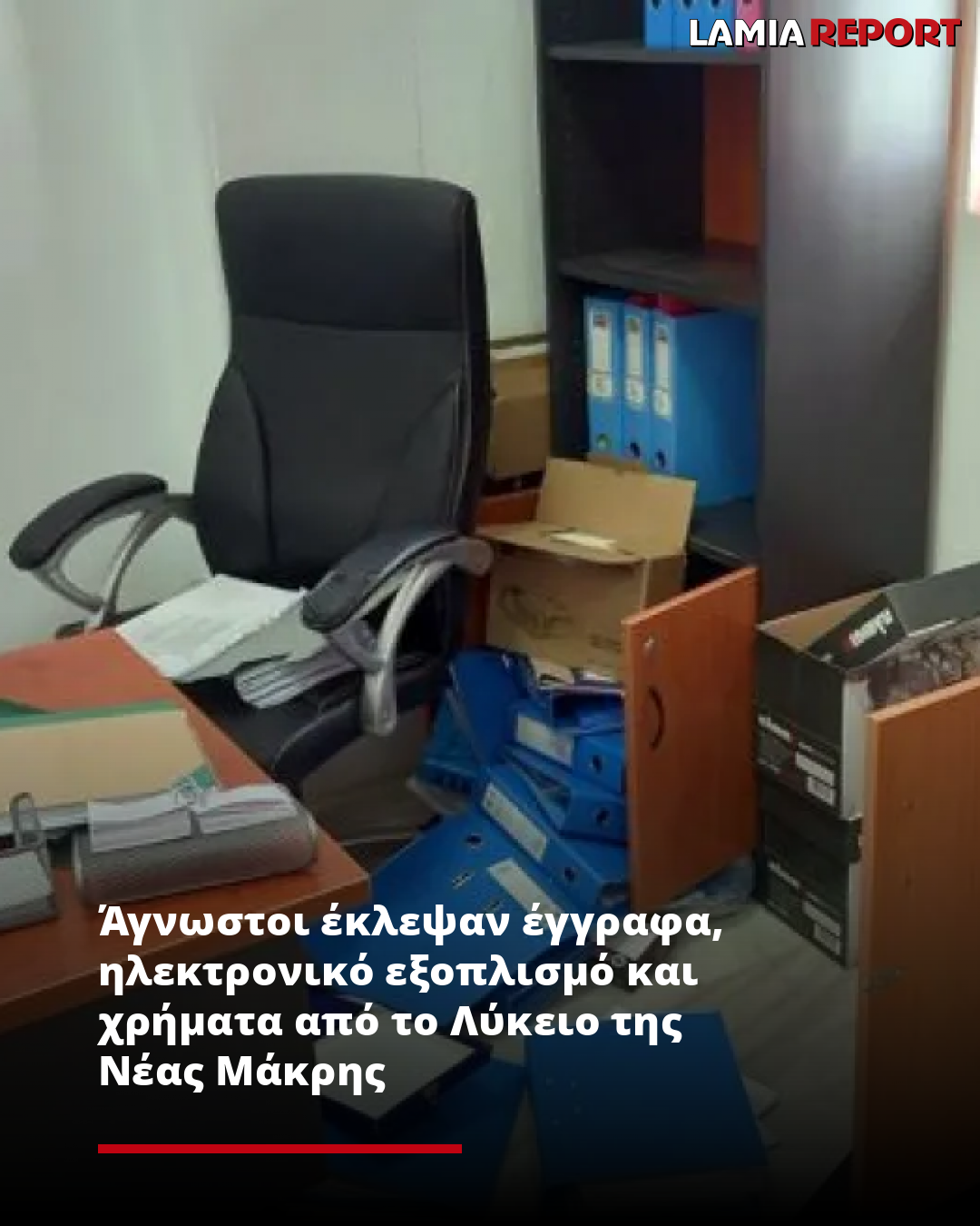 Ένα πρωτοφανές περιστατικό συνέβη το πρωί της Παρασκευής όταν άγνωστοι παραβίασαν τις πόρτες του 2ου Λυκείου Νέας Μάκρης και προχώρησαν σε βανδαλισμό του χώρου, αφαίρεση σχολικών εγγράφων και κλοπές ηλεκτρονικού εξοπλισμού, καθώς και χρημάτων από το κυλικείο του σχολείου.