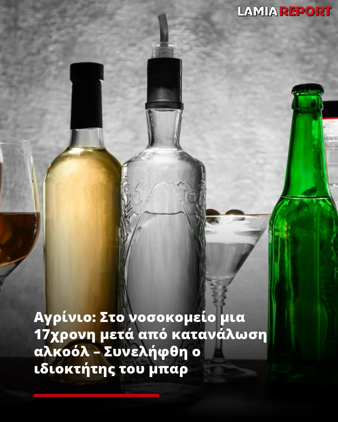 Συγκεκριμένα το βράδυ του Σαββάτου η 17χρονη πήγε σε μπαρ στο Αγρίνιο, όπου κατανάλωσε αλκοόλ με αποτέλεσμα να μεθύσει και να μεταφερθεί στο Γενικό Νοσοκομείο της πόλης, για την παροχή πρώτων βοηθειών.