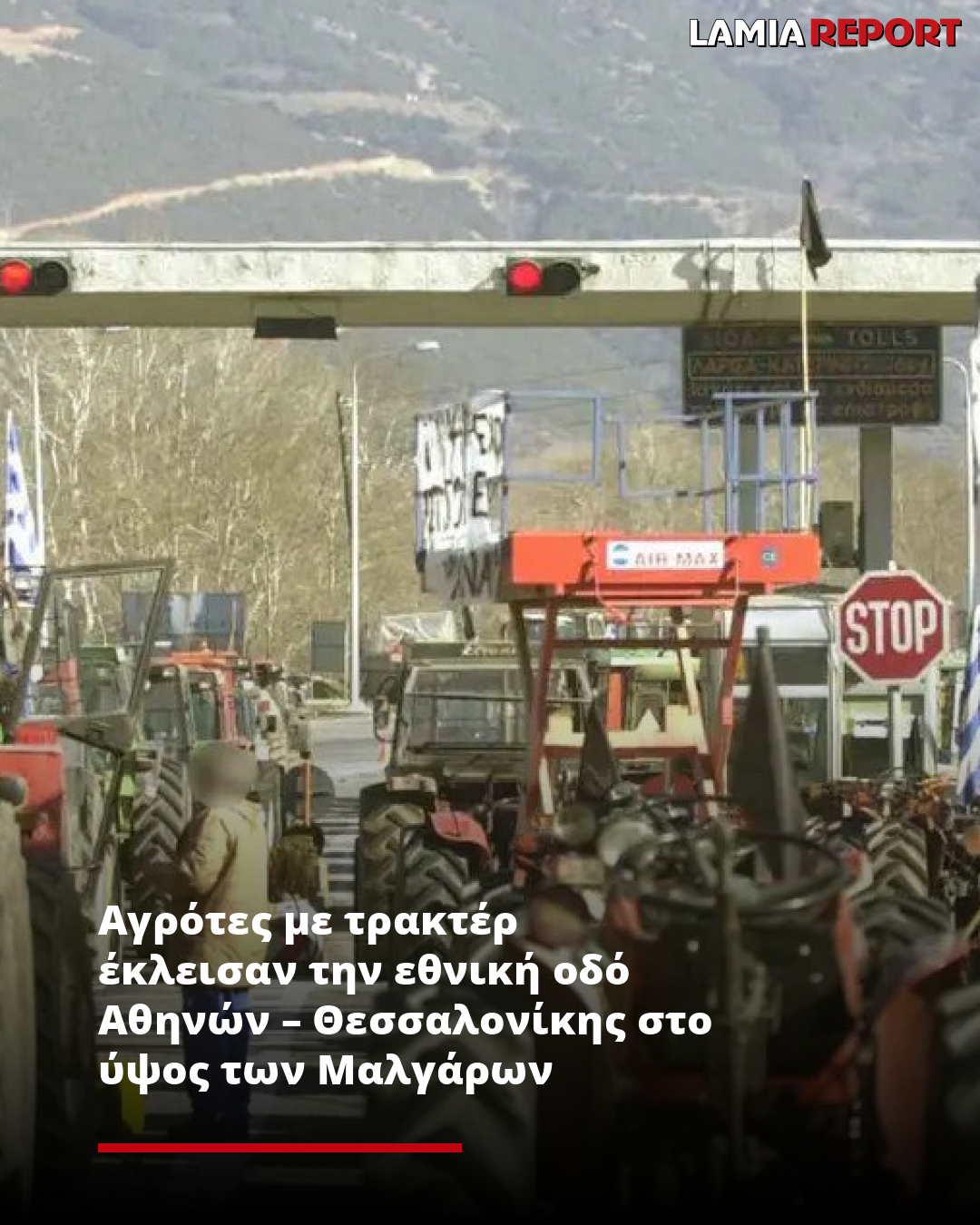 Αγρότες με τρακτέρ έκλεισαν την εθνική οδό Αθηνών – Θεσσαλονίκης στο ύψος των Μαλγάρων