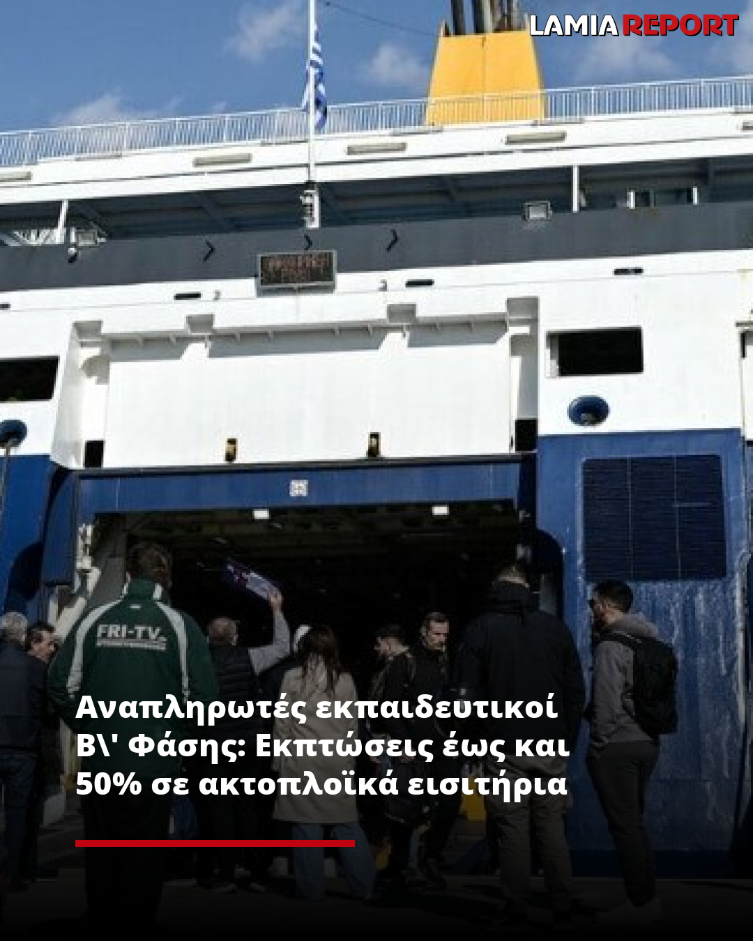 Με κοινή πρωτοβουλία των υπουργείων Παιδείας, Θρησκευμάτων και Αθλητισμού και Ναυτιλίας και Νησιωτικής Πολιτικής, ανακοινώνονται εκπτώσεις έως και 50% στα ακτοπλοϊκά εισιτήρια των αναπληρωτών εκπαιδευτικών της Β' φάσης προσλήψεων, προκειμένου να μεταβούν στην περιοχή τοποθέτησής τους, στο πλαίσιο ανάληψης των καθηκόντων τους.