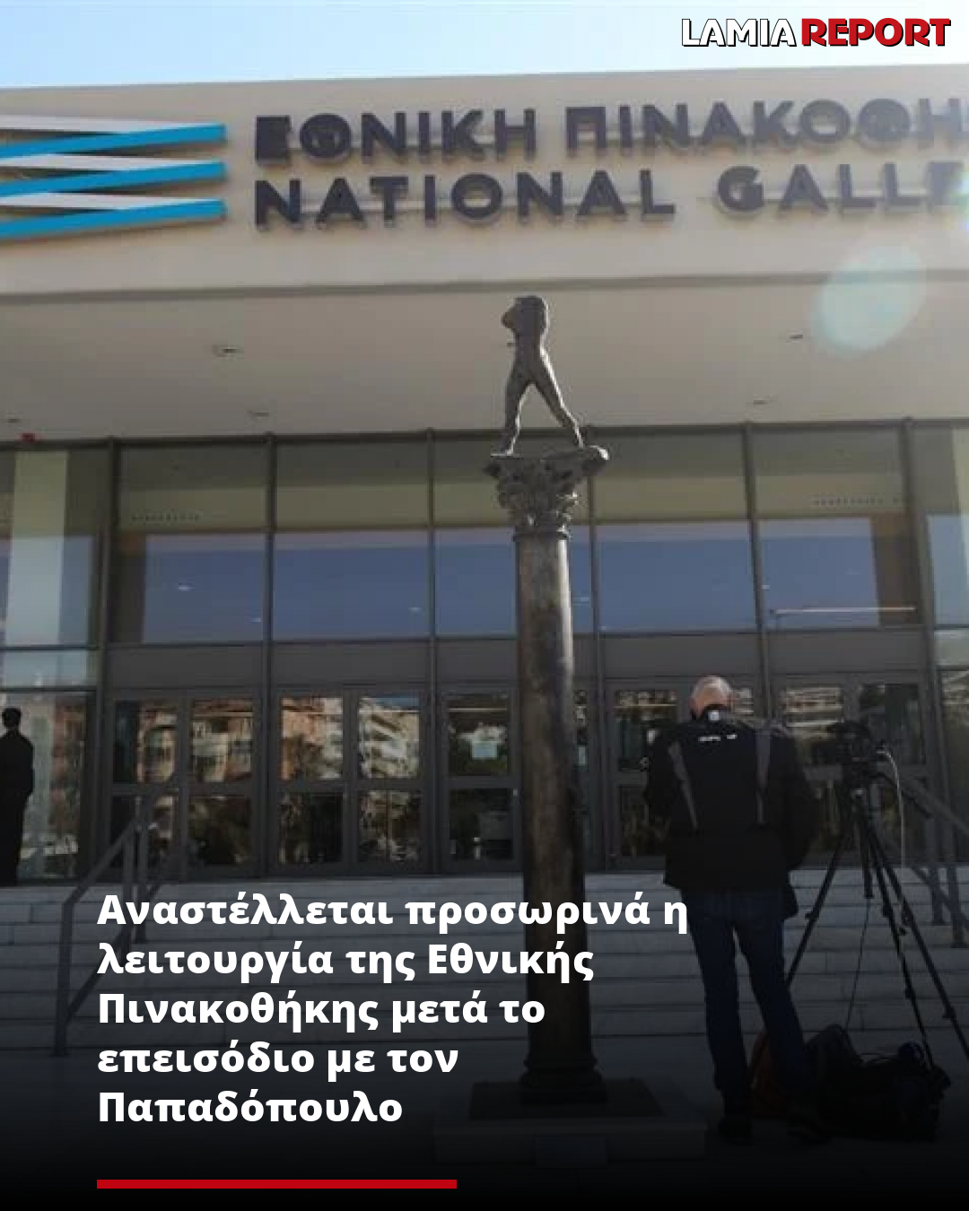 Με ανακοίνωσή της, η Εθνική Πινακοθήκη - Μουσείο Αλεξάνδρου Σούτσου πληροφορεί ότι η λειτουργία της «αναστέλλεται προσωρινά λόγω της επίθεσης σε έργα τέχνης από τον βουλευτή Β' Θεσσαλονίκης του κόμματος "Νίκη", Νικόλαο Παπαδόπουλο».
