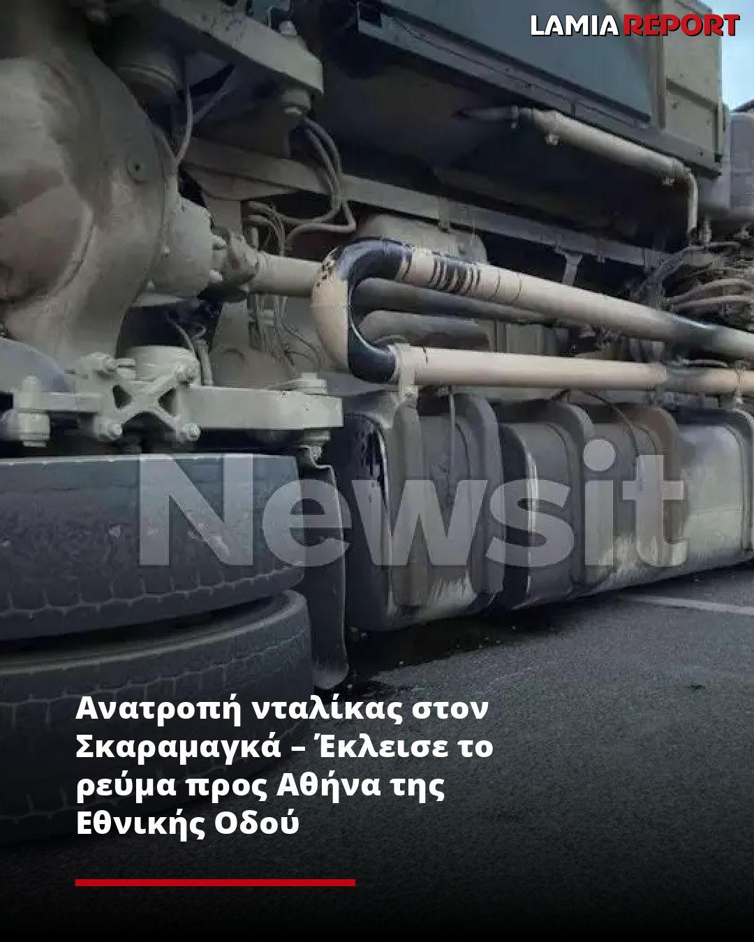 Ανατροπή νταλίκας στον Σκαραμαγκά – Έκλεισε το ρεύμα προς Αθήνα της Εθνικής Οδού