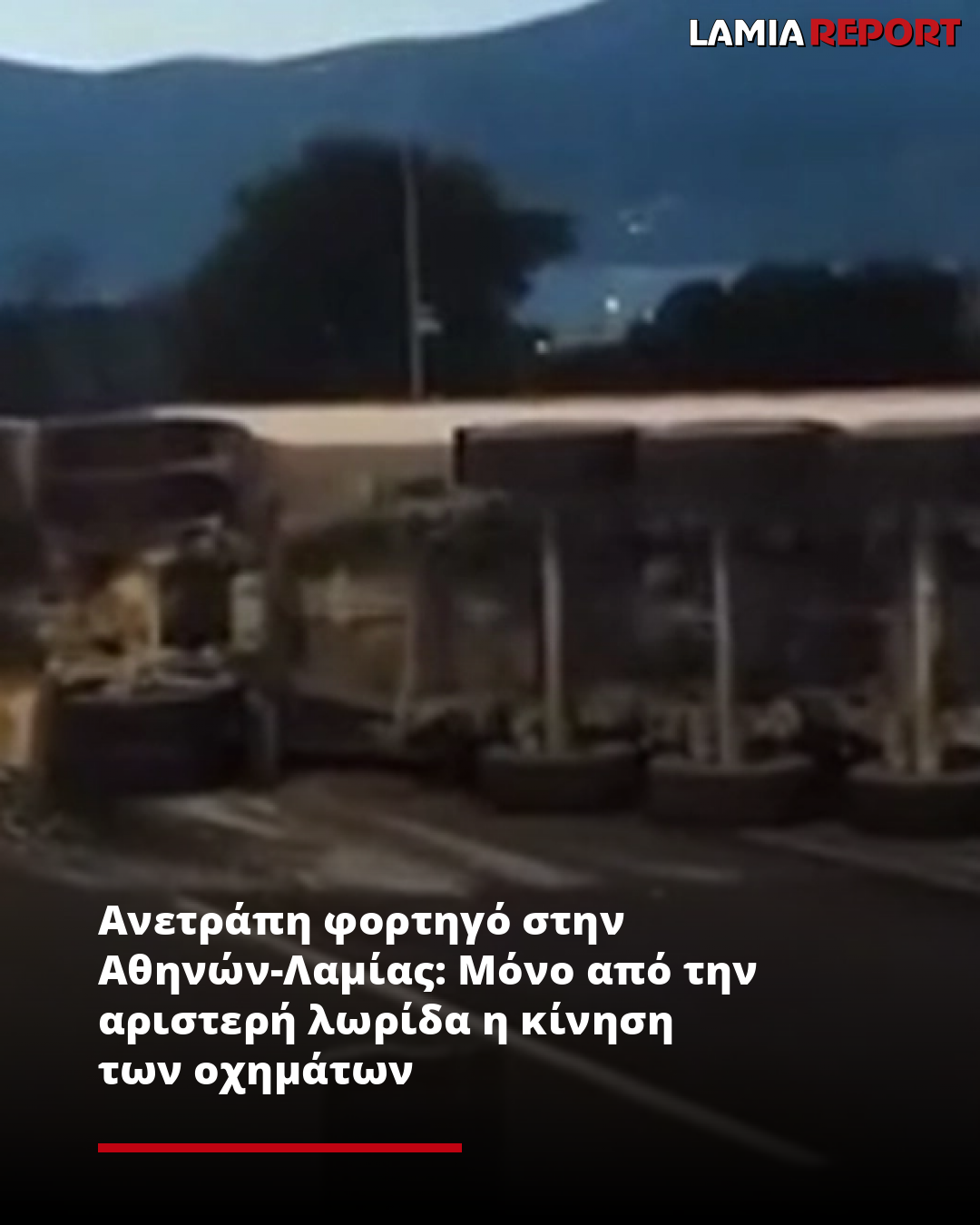 Το περιστατικό συνέβη στο 54χλμ. της Εθνικής Οδού, στο ρεύμα προς Αθήνα, στην περιοχή του Αυλώνα, όταν μετά από τροχαίο ατύχημα ένα φορτηγό ανατράπηκε στη μέση του οδοστρώματος.