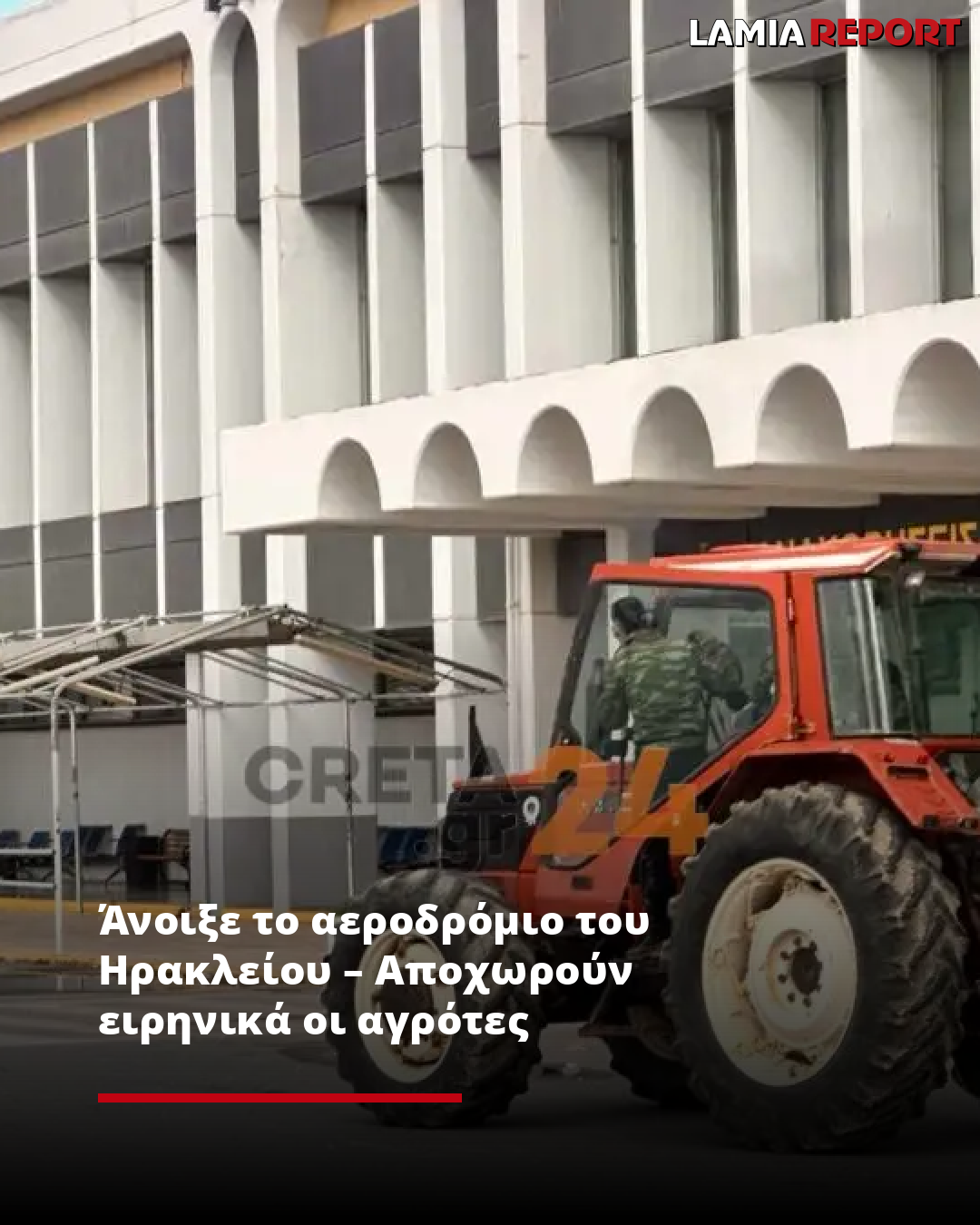 Τον τερματισμό της κατάληψης στο αεροδρόμιο Ηρακλείου «Ν. Καζαντζάκης» ανακοίνωσε το πρωί της Τρίτης (9.12.25) ο Πρόεδρος της Παγκρήτιας Συντονιστικής Επιτροπής και του Κτηνοτροφικού Συλλόγου Ανωγείων, Βασίλης Μανουράς.