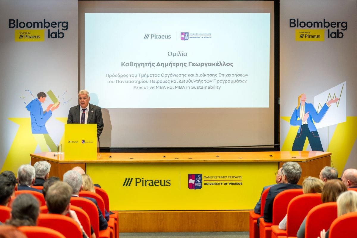 Ο Πρόεδρος του Τμήματος Οργάνωσης Διοίκησης Επιχειρήσεων, Καθηγητής κ. Δημήτρης Γεωργακέλλος, δήλωσε: «Είμαι ιδιαίτερα χαρούμενος και εξαιρετικά υπερήφανος που το Πανεπιστήμιο Πειραιώς, μέσω του Τμήματος Οργάνωσης και Διοίκησης Επιχειρήσεων και του Προγράμματος Μεταπτυχιακών Σπουδών MBA in Sustainability powered by Piraeus, είναι το πρώτο Ελληνικό Πανεπιστήμιο που διαθέτει Bloomberg Lab. Αναμφίβολα, η δημιουργία του αποτελεί ένα ακόμη ουσιαστικό βήμα προς την κατεύθυνση της σύγχρονης, βιωματικής εκπαίδευσης. Με τη νέα αυτή υποδομή, οι φοιτητές μας έχουν τη δυνατότητα να έρθουν σε άμεση επαφή με τα δεδομένα και τα εργαλεία που χρησιμοποιεί η διεθνής αγορά, ενισχύοντας τις δεξιότητές τους και καλλιεργώντας μια κουλτούρα ανάλυσης, καινοτομίας και υπευθυνότητας. Ευχαριστούμε θερμά τον Όμιλο Πειραιώς για τη στρατηγική συνεργασία και τη στήριξή της στο κοινό μας όραμα για ένα πανεπιστήμιο ανοιχτό στη γνώση, τη βιώσιμη ανάπτυξη και την κοινωνία».