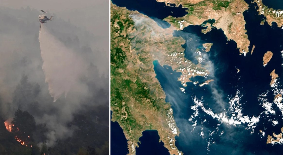 Όπως φαίνεται και από το το πρόγραμμα γεωσκόπησης της Ευρωπαϊκής Ένωσης, Copernicus, στην εικόνα που καταγράφει ο δορυφόρος φαίνονται οι πυκνοί καπνοί.