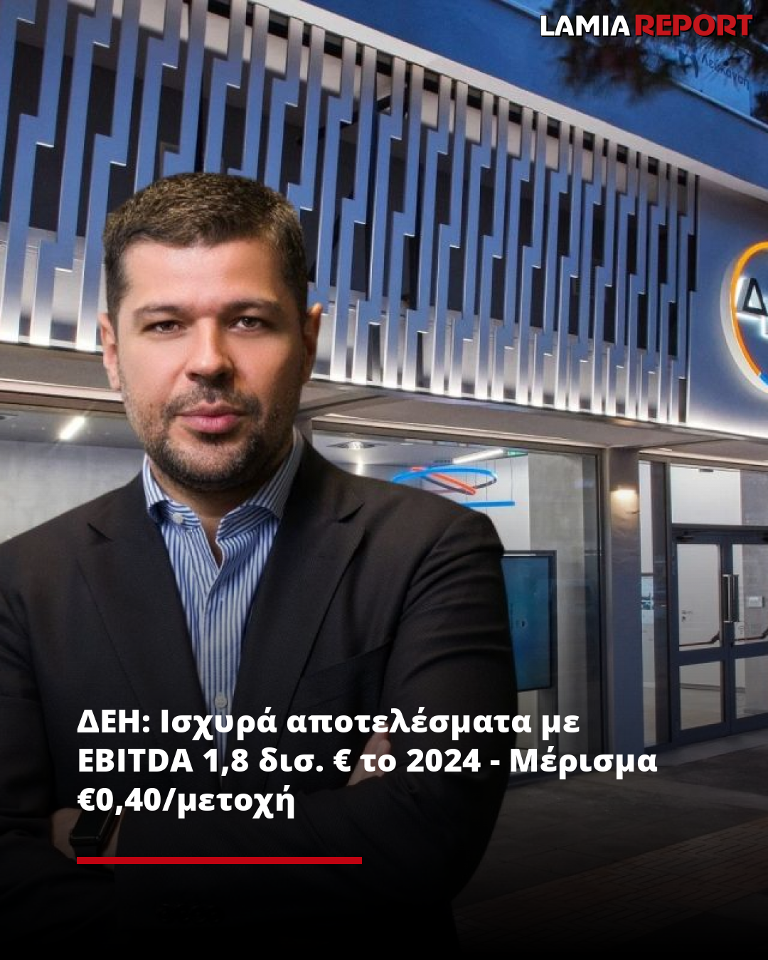 ΔΕΗ: Ισχυρά αποτελέσματα με EBITDA 1,8 δισ. € το 2024 - Μέρισμα €0,40/μετοχή