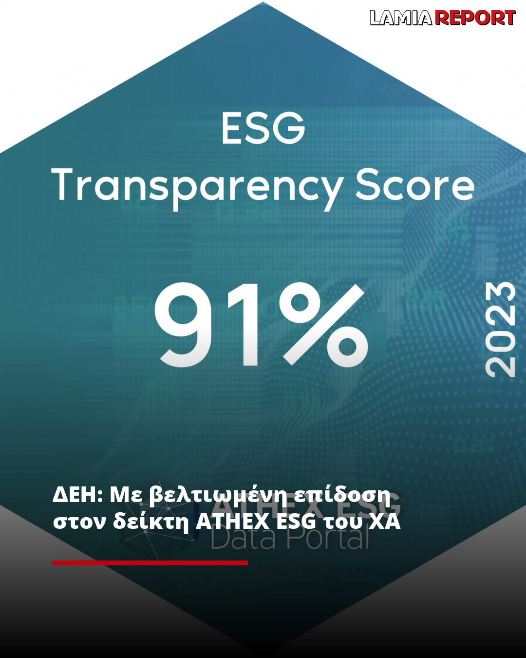 Η ΔΕΗ βελτίωσε την αξιολόγησή της στο ESG Transparency Score του δείκτη ATHEX ESG του Χρηματιστηρίου Αθηνών, πετυχαίνοντας 91% θετική αξιολόγηση μετά από εκτενή ανάλυση μίας σειράς κριτηρίων για τους πυλώνες Περιβάλλον - Κοινωνία - Εταιρική Διακυβέρνηση.
