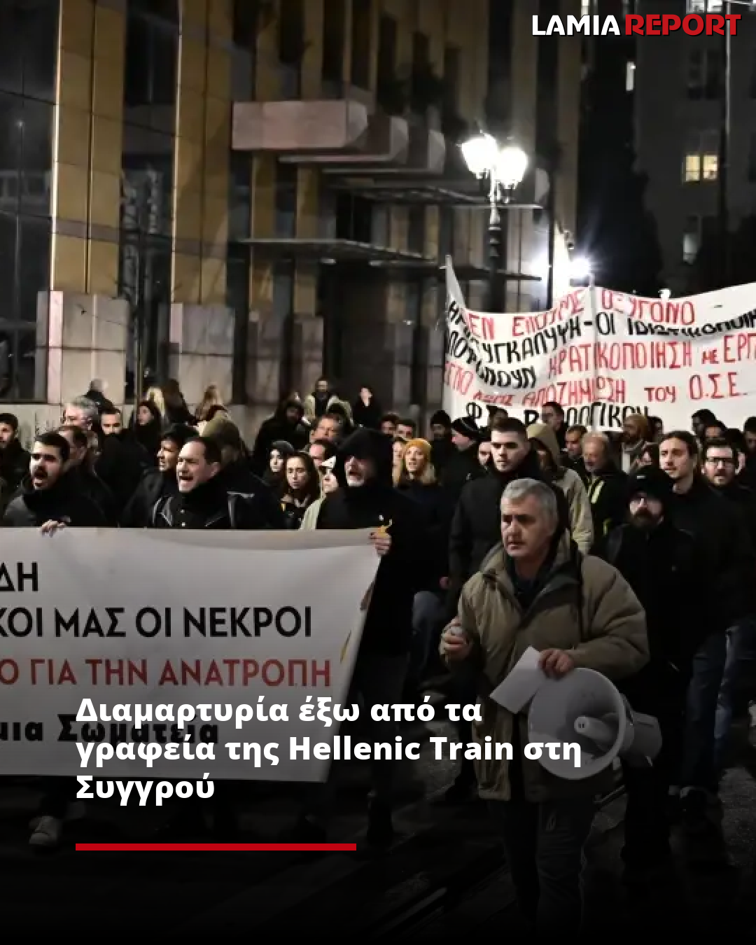 Σωματεία και συλλογικότητες, έκαναν αργά το απόγευμα της Τρίτης (18.02.2025) διαμαρτυρία στη λεωφόρο Συγγρού, έξω από τα γραφεία της Hellenic Train.