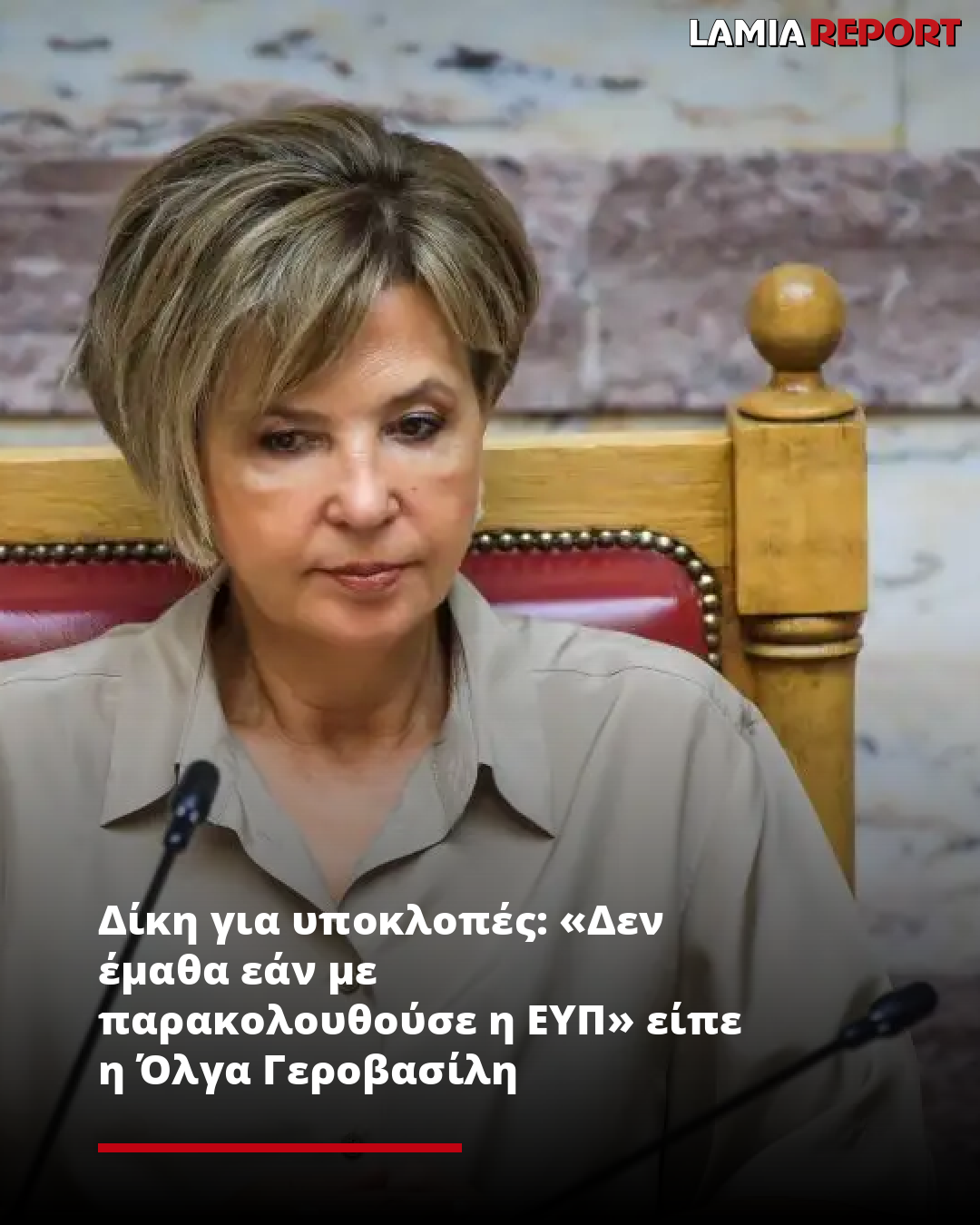 «Νόμιμη παρακολούθηση υπάρχει όταν υπάρχει και λόγος. Εγώ δεν έμαθα εάν με παρακολουθούσε η ΕΥΠ» κατέθεσε η κυρία Γεροβασίλη.
