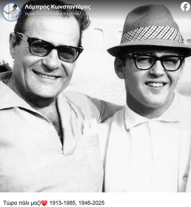 Με μια ασπρόμαυρη φωτογραφία στην οποία ποζάρουν μαζί, ο Δημήτρης Κωνσταντάρας και ο πατέρας του Λάμπρος Κωνσταντάρας, ο γιος του δημοσιογράφου γράφει τρεις λέξεις: «Τώρα πάλι μαζί».