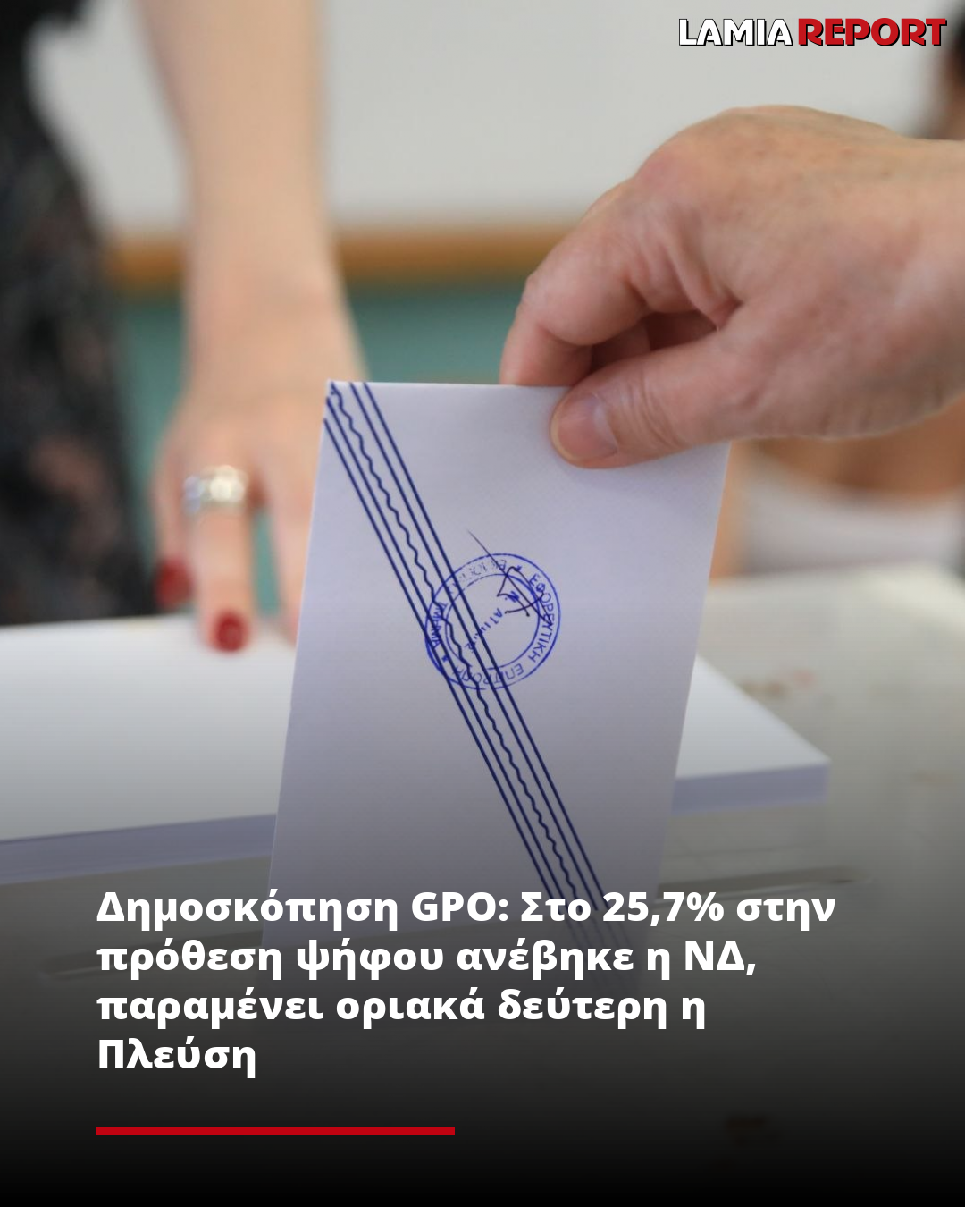 Δημοσκόπηση GPO: Στο 25,7% στην πρόθεση ψήφου ανέβηκε η ΝΔ, παραμένει οριακά δεύτερη η Πλεύση