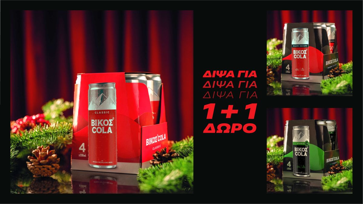 Για ακόμη μία χρονιά, η ΒΙΚΟΣ COLA κάνει τις γιορτές ακόμα πιο απολαυστικές, επιστρέφοντας με την καθιερωμένη χριστουγεννιάτικη προσφορά 1+1 δώρο στην χάρτινη συσκευασία.