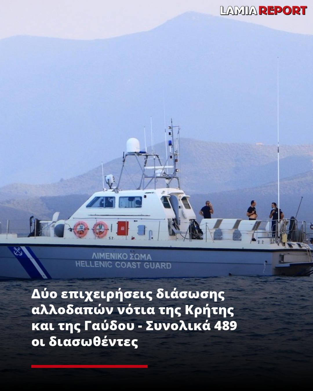 Τουλάχιστον 489 άτομα έχουν περισυλλεγεί και διασωθεί από το πρωί σε δύο ξεχωριστές επιχειρήσεις έρευνας και διάσωσης σε θαλάσσιες περιοχές νότια της Κρήτης και της Γαύδου, που πραγματοποιήθηκαν υπό τον συντονισμό του Ενιαίου Κέντρου Συντονισμού Έρευνας και Διάσωσης (ΕΚΣΕΔ) και με την ενεργό συμμετοχή του Λιμενικού Σώματος - Ελληνικής Ακτοφυλακής (Λ.Σ.-ΕΛ.ΑΚΤ.) και δυνάμεων της Frontex.