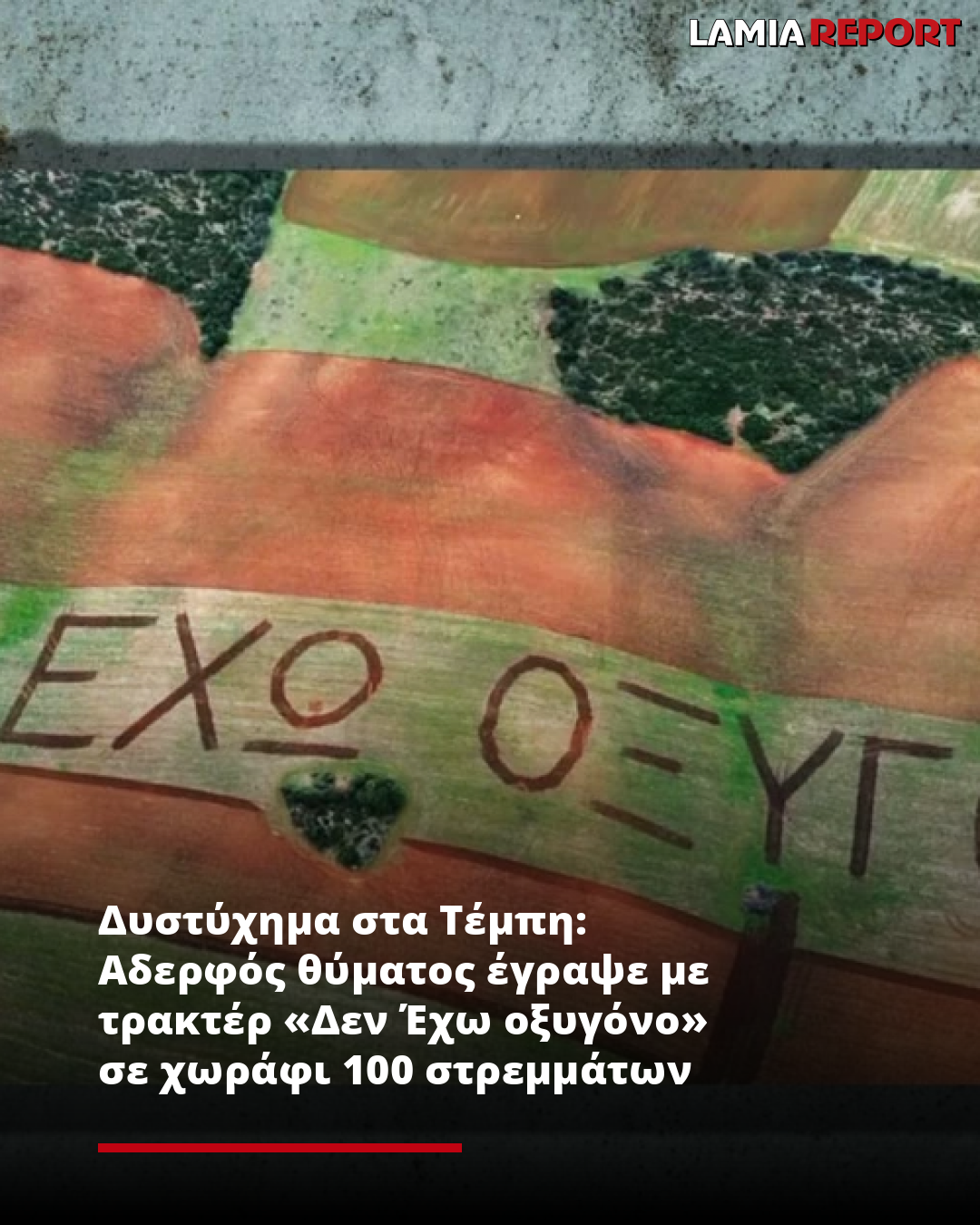 Συγκλονίζει η κίνηση αδερφού θύματος των Τεμπών, να γράψει το σύνθημα «Δεν έχω οξυγόνο» με το τρακτέρ του, σε ένα χωράφι 100 στρεμμάτων.