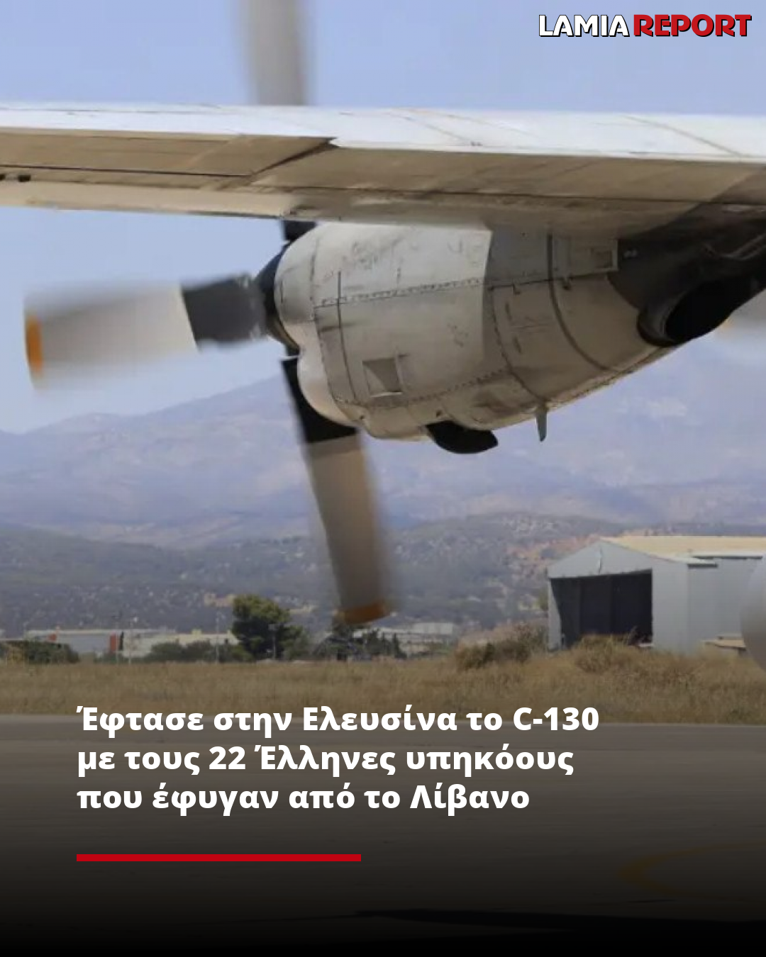 Το μεταγωγικό αεροσκάφος τύπου C-130 της ελληνικής Πολεμικής Αεροπορίας προσγειώθηκε στην αεροπορική βάση της Ελευσίνας και την έδρα της 356ης Μοίρας Τακτικών Μεταφορών, που απομάκρυνε τους Έλληνες και Κύπριους υπηκόους από την Βηρυτό.