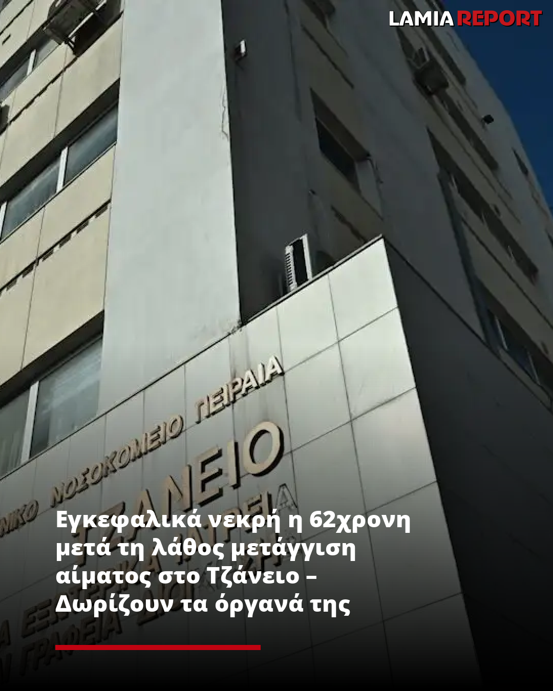 Εγκεφαλικά νεκρή είναι η 62χρονη γυναίκα μετά τη λάθος μετάγγιση αίματος που της έγινε στο Τζάνειο Νοσοκομείο, με την οικογένειά της να προχωρά σε δωρεά οργάνων.