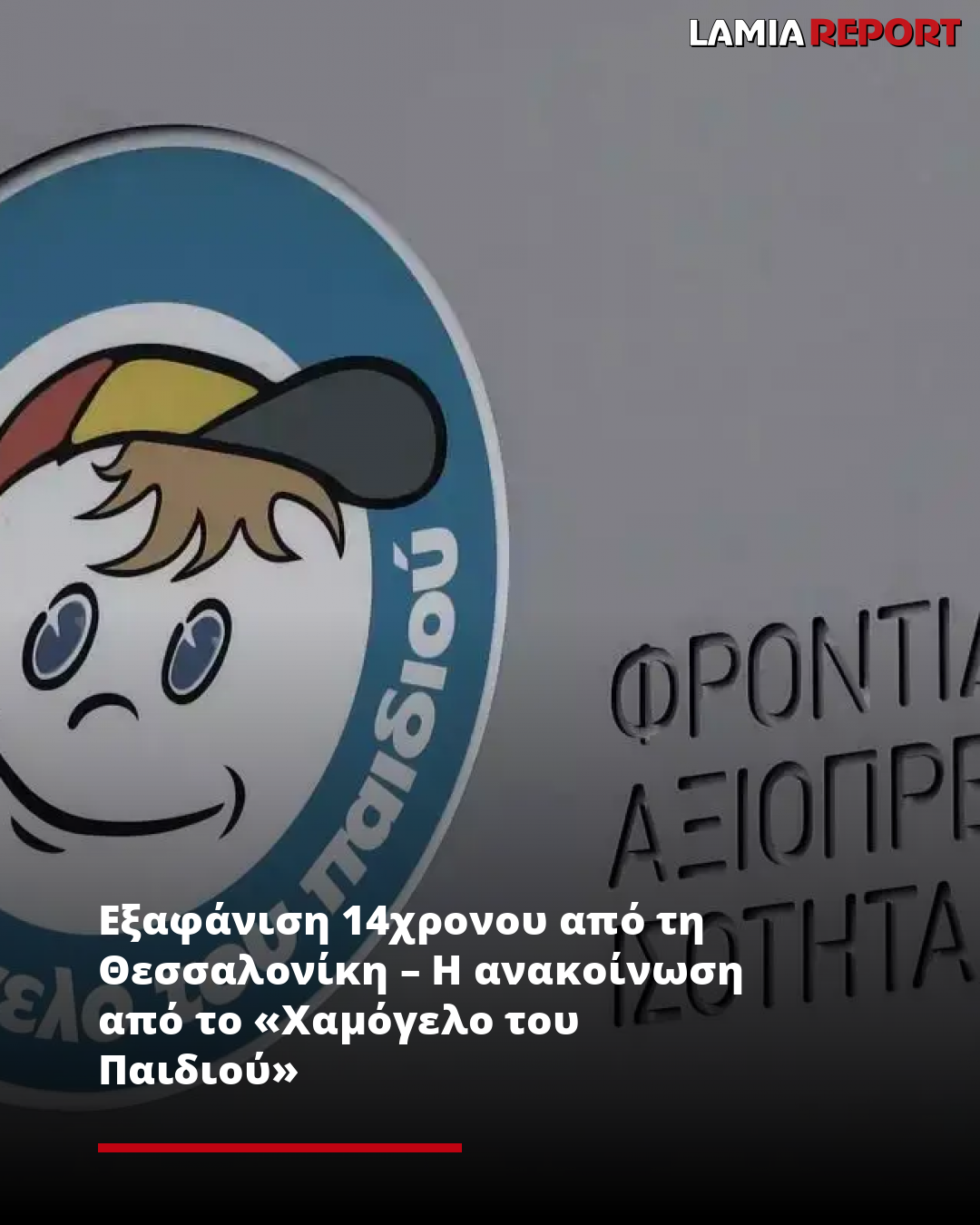 Το Χαμόγελο του Παιδιού ενημερώθηκε σήμερα, 12/02/2026 και προχώρησε άμεσα σε δημοσιοποίηση των στοιχείων του ανηλίκου, κατόπιν εισαγγελικής εντολής, καθώς ενδέχεται να συντρέχουν λόγοι οι οποίοι θέτουν την ζωή του σε κίνδυνο.