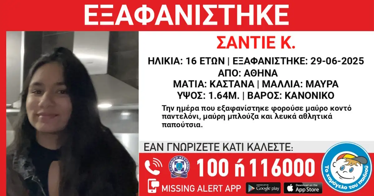 Μεγάλη κινητοποίηση σήμανε στην ελληνική αστυνομία μετά την ανακοίνωση από το «Χαμόγελο του Παιδιού» το απόγευμα της Τετάρτης (02.07.2025) για την εξαφάνιση της Σαντιέ Κ., 16 ετών από χώρο φιλοξενίας στην Αθήνα.