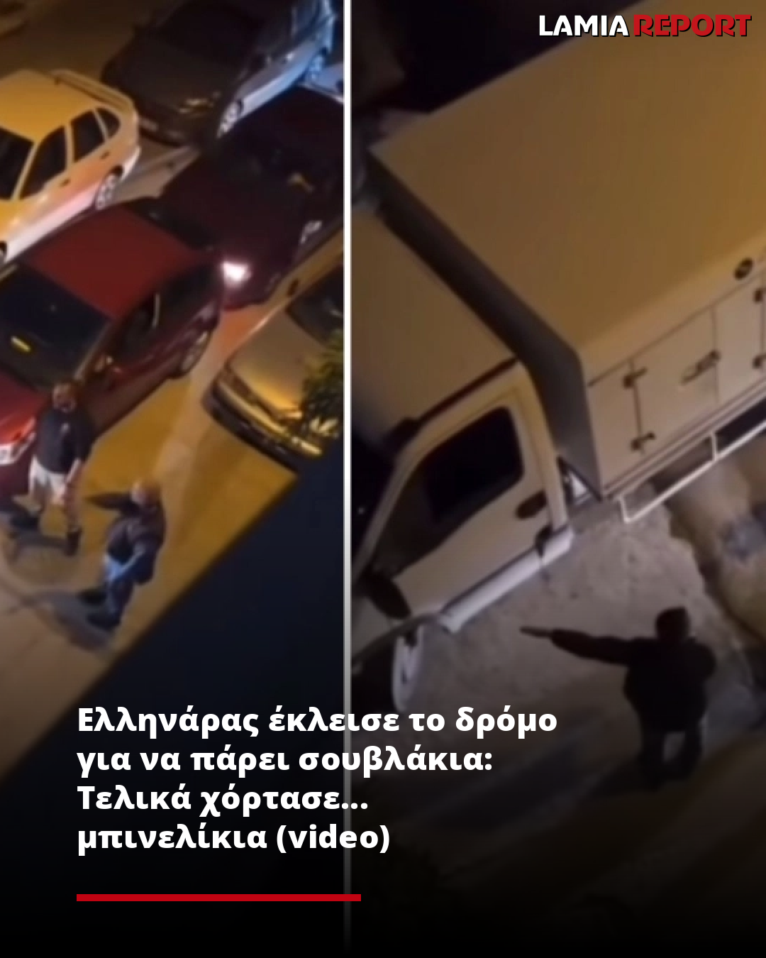 Ο πεινασμένος κυριούλης, όπως σημειώνει το gazzetta.gr, εμφανίζεται στο κάδρο με τα δίπιτα (ναι, ποντάρουμε πως πήρε δίπιτα) καλά κλεισμένα στη νάιλον τσάντα, αλλά την ίδια στιγμή εμφανίζονται και δύο εξίσου πεινασμένοι –για μανούρα και όχι για σουβλάκι– οδηγοί που είχαν μπλοκαριστεί από τον ίδιο.