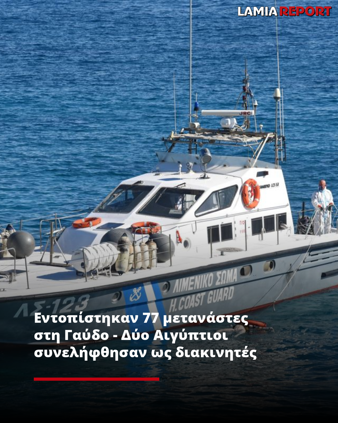 Τις πρωινές ώρες χθες, στελέχη του Λιμενικού Φυλακίου της Γαύδου εντόπισαν εβδομήντα επτά αλλοδαπούς (66 άνδρες και 11 ανήλικους) στην παραλία Τρυπητή της Γαύδου. Οι αλλοδαποί μεταφέρθηκαν με Ε/Γ-Ο/Γ πλοίο στο λιμάνι της Παλαιόχωρας και στη συνέχεια σε προσωρινό χώρο φιλοξενίας στην Αγυιά Χανίων. Τις μεσημβρινές ώρες σήμερα, δύο αλλοδαποί εκ των ανωτέρω (υπήκοοι Αιγύπτου) ηλικίας 34 και 39 ετών, αναγνωρίστηκαν, κατά την προανακριτική διαδικασία, από τους υπολοίπους ως οι διακινητές τους και συνελήφθησαν για παράβαση του άρθρου 83 του Ν. 3386/2005 «Παράνομη είσοδος στη χώρα», του άρθρου 25 του Ν. 5038/2023 «Διευκόλυνση» σε συνδυασμό με το άρθρο 45 του Π.Κ. «Συναυτουργία» και του άρθρου 306 Π.Κ. «Έκθεση». Κατά δήλωση των διασωθέντων, είχαν εκκινήσει από το Τομπρούκ Λιβύης με προορισμό την Ελλάδα έναντι χρηματικής αμοιβής. Από το Κεντρικό Λιμεναρχείο Χανίων που διενεργεί την προανάκριση, κατασχέθηκαν η λέμβος μεταφοράς και δύο συσκευές κινητής τηλεφωνίας.