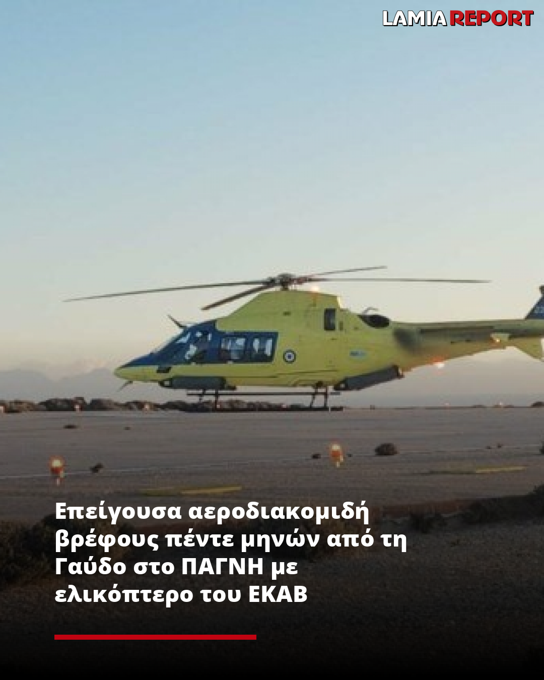 Επείγουσα αεροδιακομιδή βρέφους πέντε μηνών από τη Γαύδο στο ΠΑΓΝΗ με ελικόπτερο του ΕΚΑΒ