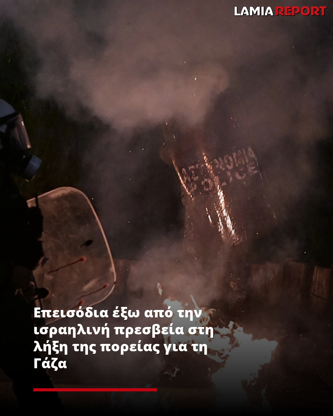 Επεισόδια ξέσπασαν το βράδυ της Τρίτης στην Κηφισίας στο ύψος της πρεσβείας του Ισραήλ, μετά την ολοκλήρωση της πορείας αλληλεγγύης υπέρ των Παλαιστινίων.