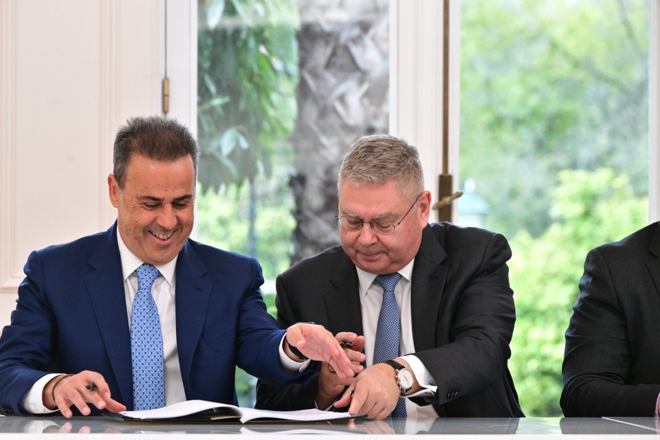 Ύστερα από μήνες διαπραγματεύσεων και προετοιμασίας υπεγράφησαν στο Μέγαρο Μαξίμου, παρουσία του πρωθυπουργού Κυριάκου Μητσοτάκη, οι συμφωνίες μίσθωσης μεταξύ του Ελληνικού Δημοσίου και της κοινοπραξίας Chevron-Helleniq Energy που αφορούν την παραχώρηση αποκλειστικών δικαιωμάτων έρευνας και εκμετάλλευσης υδρογονανθράκων σε θαλάσσιες περιοχές νότια της Πελοποννήσου και της Κρήτης.]