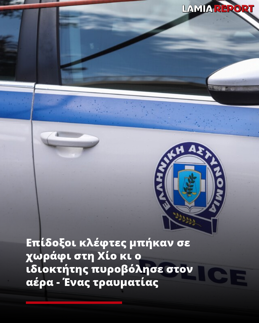 Επεισόδιο με πυροβολισμούς στη Χίο, όπου αγρότης άνοιξε πυρ κατά πέντε αλλοδαπών όταν αυτοί μπήκαν στο χωράφι του για να κλέψουν αγροτικά προϊόντα. Αποτέλεσμα ήταν να τραυματιστεί ένας από τους αλλοδαπούς.