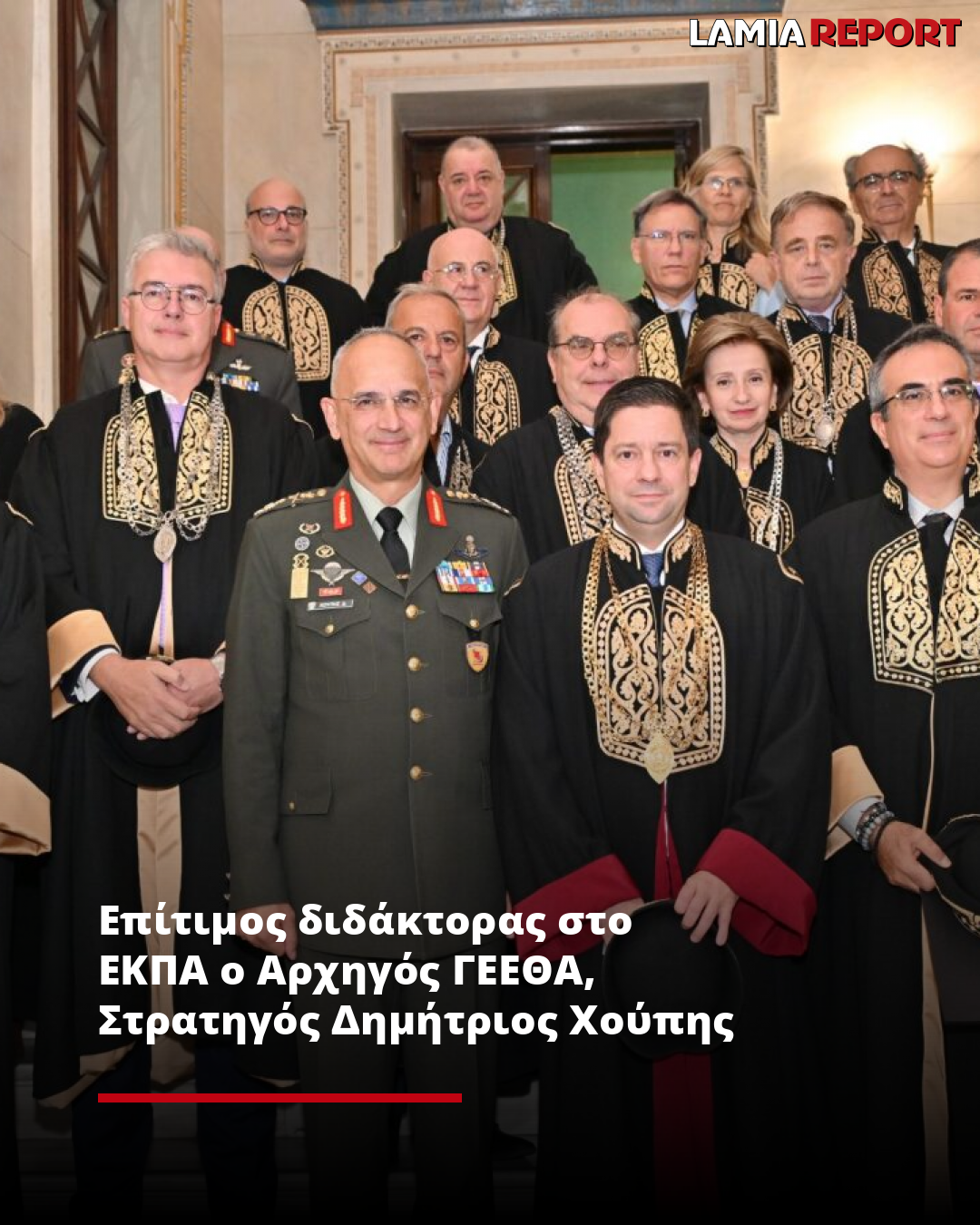 Επίτιμος Διδάκτορας του Τμήματος Διοίκησης Επιχειρήσεων και Οργανισμών της Σχολής Οικονομικών και Πολιτικών Επιστημών του Πανεπιστημίου Αθηνών αναγορεύτηκε, χθες, Τετάρτη, ο Αρχηγός ΓΕΕΘΑ, Στρατηγός Δημήτριος Χούπης, σε τελετή που πραγματοποιήθηκε στη Μεγάλη Αίθουσα του Εθνικού και Καποδιστριακού Πανεπιστημίου Αθηνών.