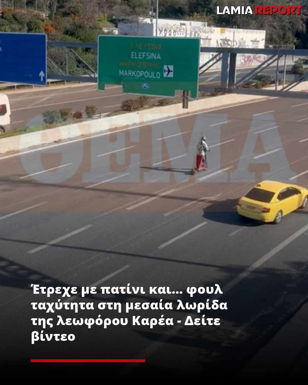 Έτρεχε με πατίνι και... φουλ ταχύτητα στη μεσαία λωρίδα της λεωφόρου Καρέα - Δείτε βίντεο