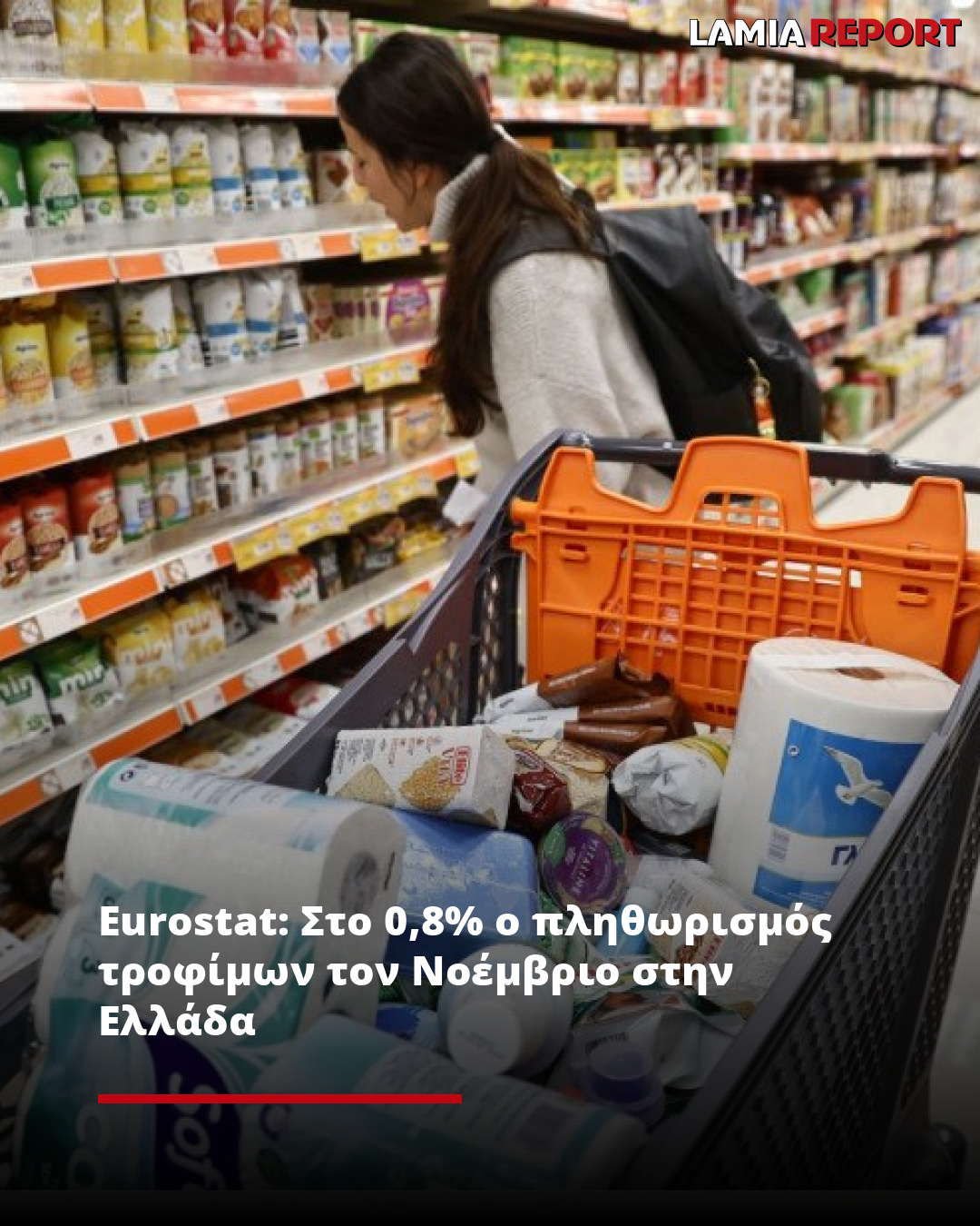 Eurostat: Στο 0,8% ο πληθωρισμός τροφίμων τον Νοέμβριο στην Ελλάδα