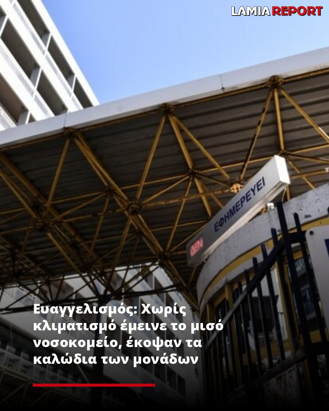 Σύμφωνα με την ανάρτησή του στο Χ, «άγνωστοι έκοψαν τα καλώδια των κλιματιστικών μονάδων του νοσοκομείου Ευαγγελισμος».