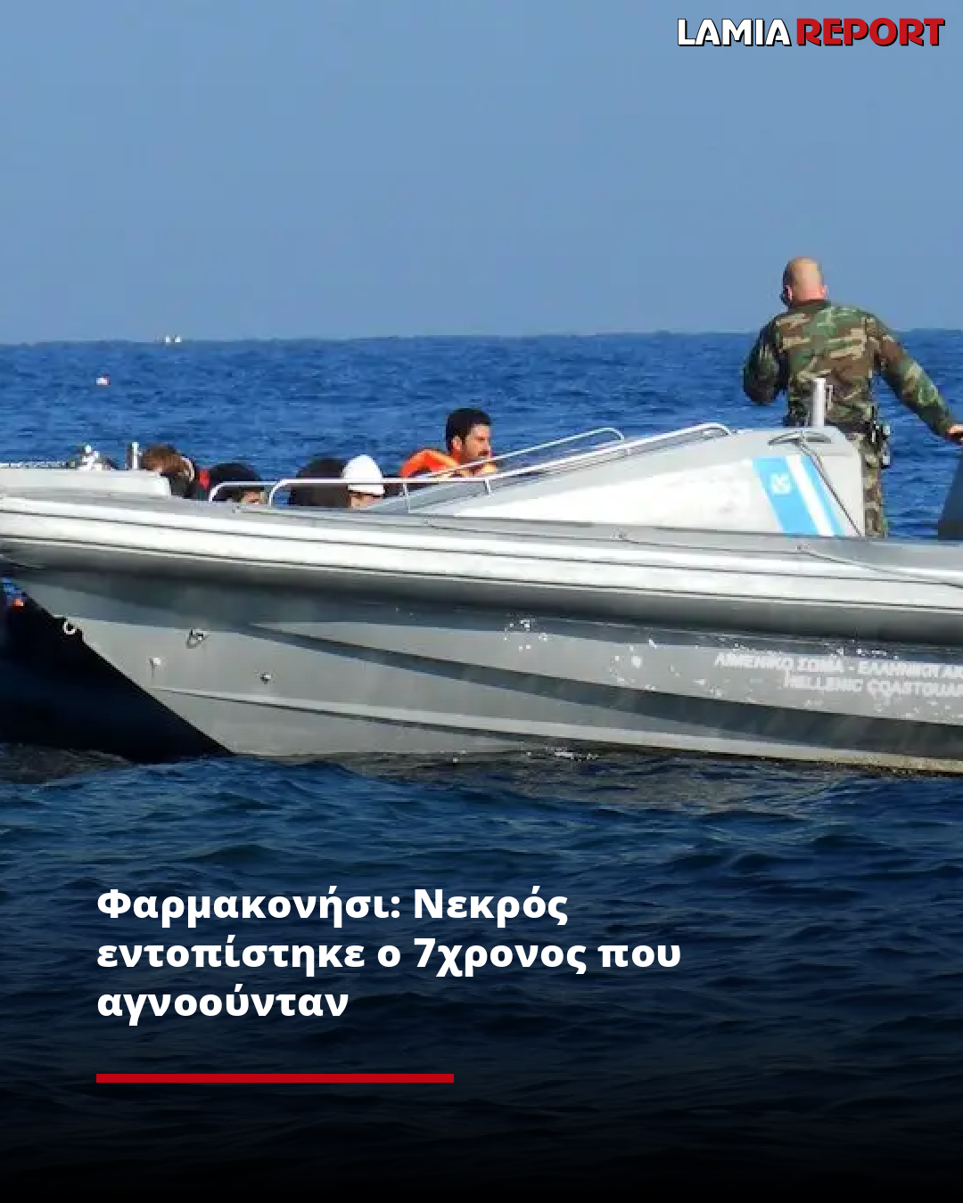 Τραγική κατάληξη είχε η υπόθεση του 7χρονου αγοριού που αγνοείτο, μετά τον εντοπισμό 40 αλλοδαπών σε θαλάσσια περιοχή κοντά στο Φαρμακονήσι, τις πρώτες πρωινές ώρες της Κυριακής, 22 Ιουνίου 2025.