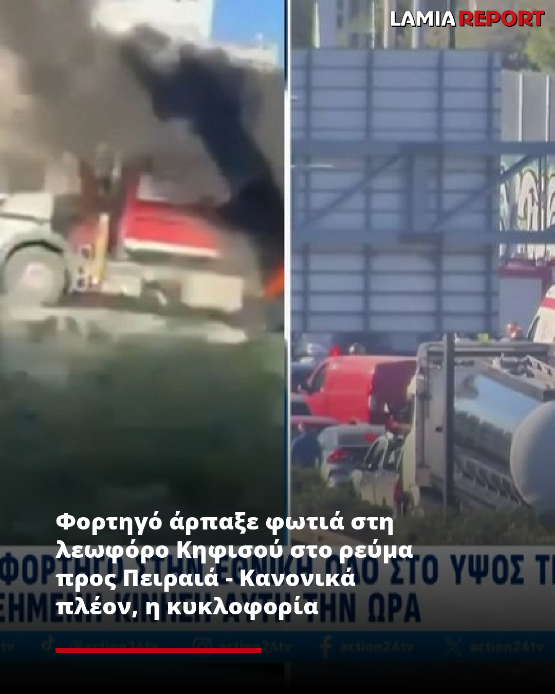 Φορτηγό άρπαξε φωτιά στη λεωφόρο Κηφισού στο ρεύμα προς Πειραιά - Κανονικά πλέον, η κυκλοφορία