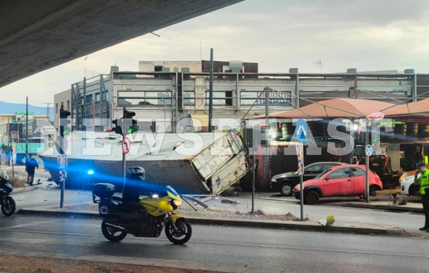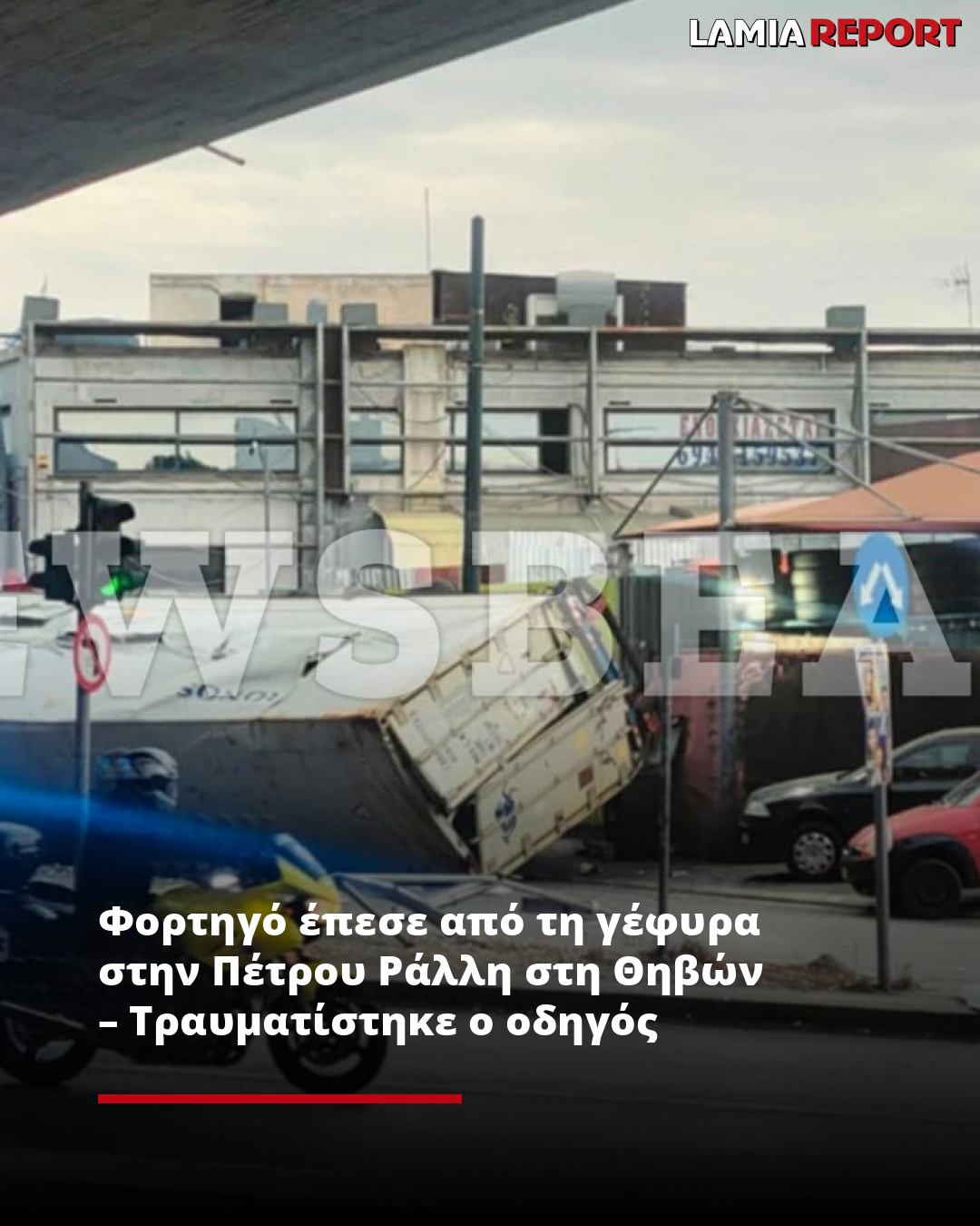 Φορτηγό έπεσε από τη γέφυρα στην Πέτρου Ράλλη στη Θηβών – Τραυματίστηκε ο οδηγός