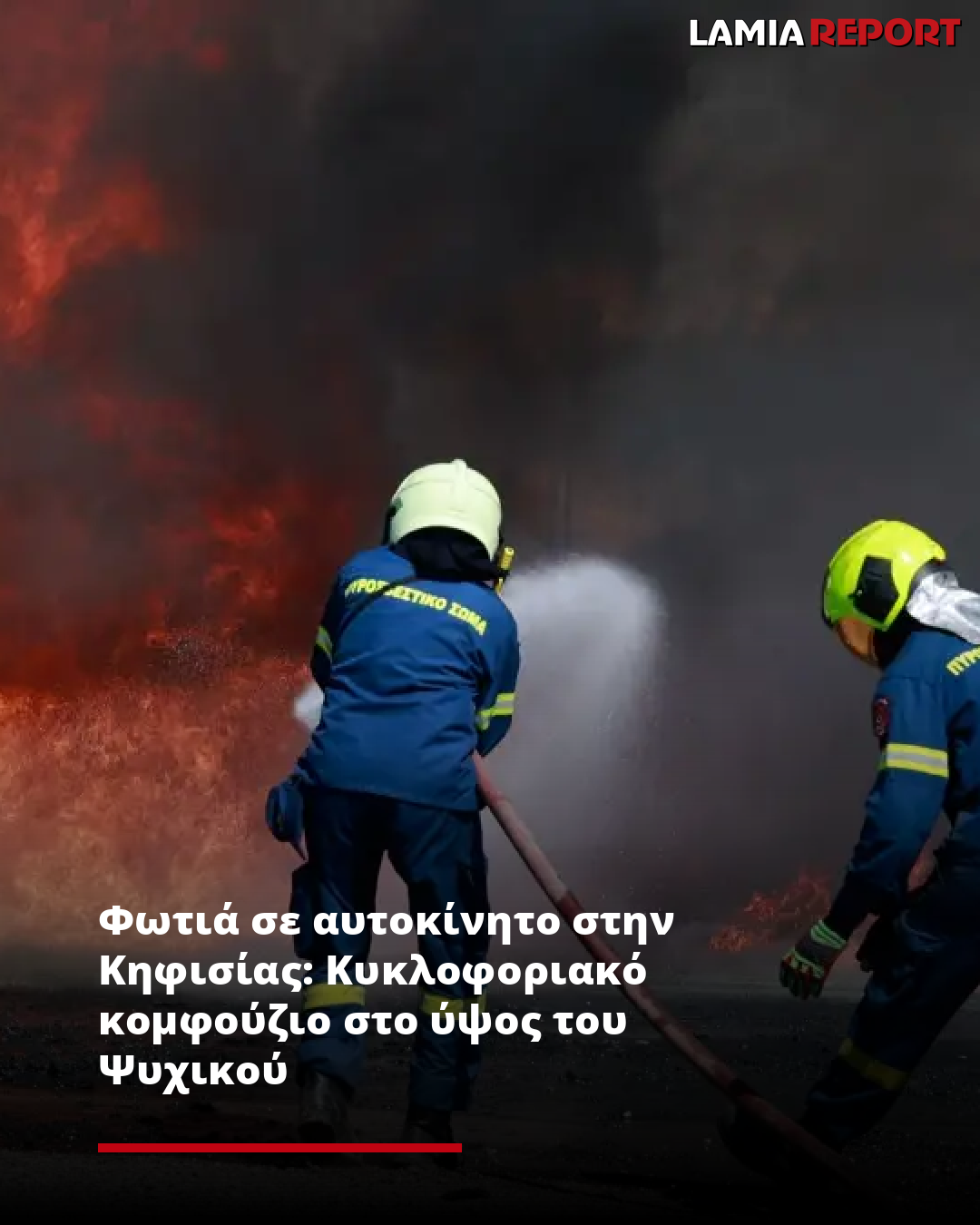 Το αυτοκίνητο άρπαξε φωτιά στη λεωφόρο Κηφισίας, στο ύψος του Φάρου Ψυχικού στο ρεύμα προς Αθήνα.