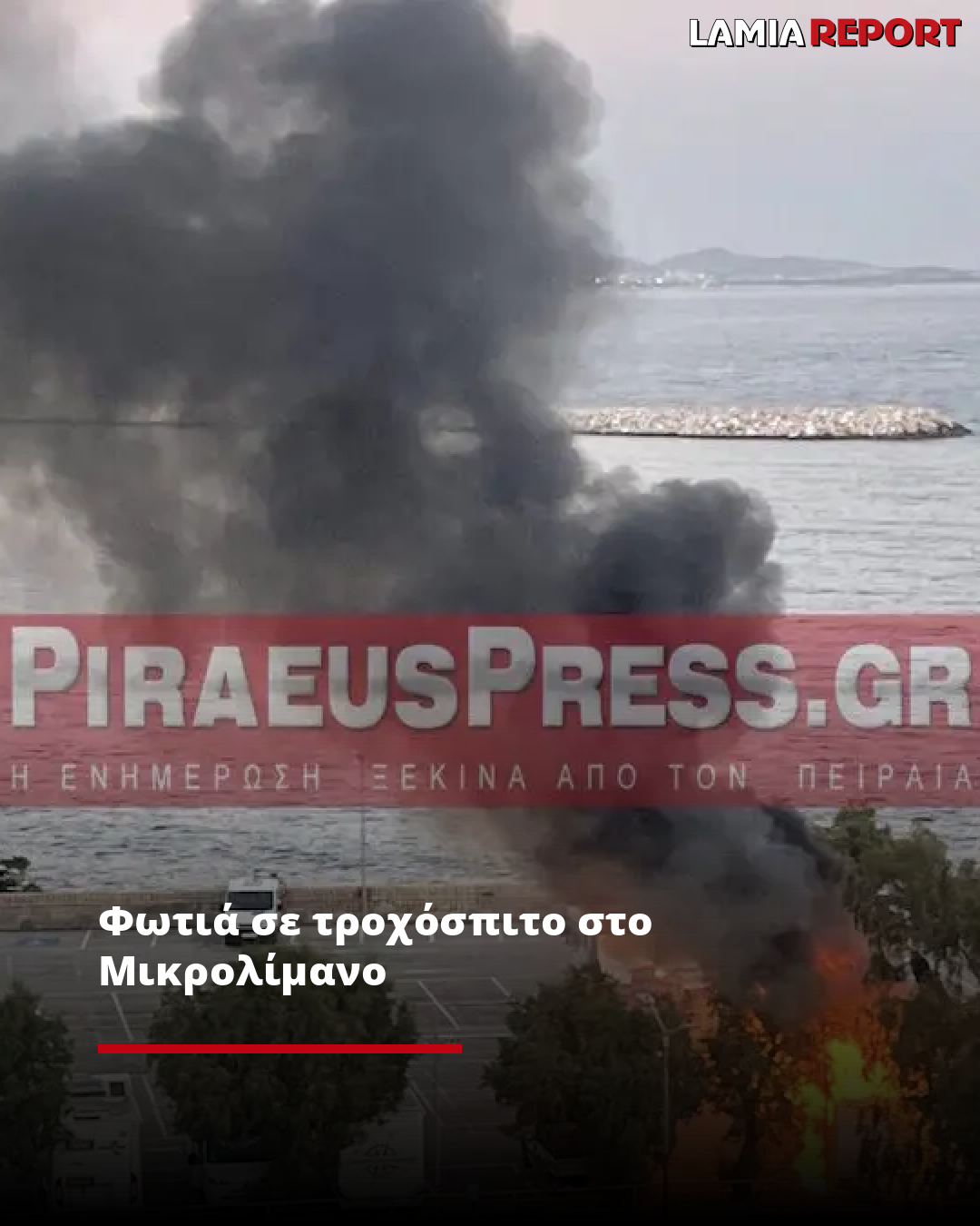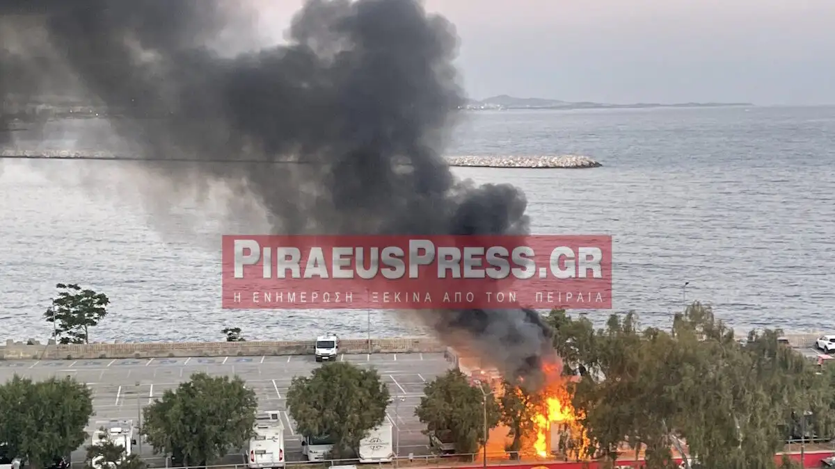 Η φωτιά ξέσπασε σε σταθμευμένο τροχόσπιτο σε πάρκινγκ στο Μικρολίμανο στον Πειραιά, σύμφωνα με την Πυροσβεστική.