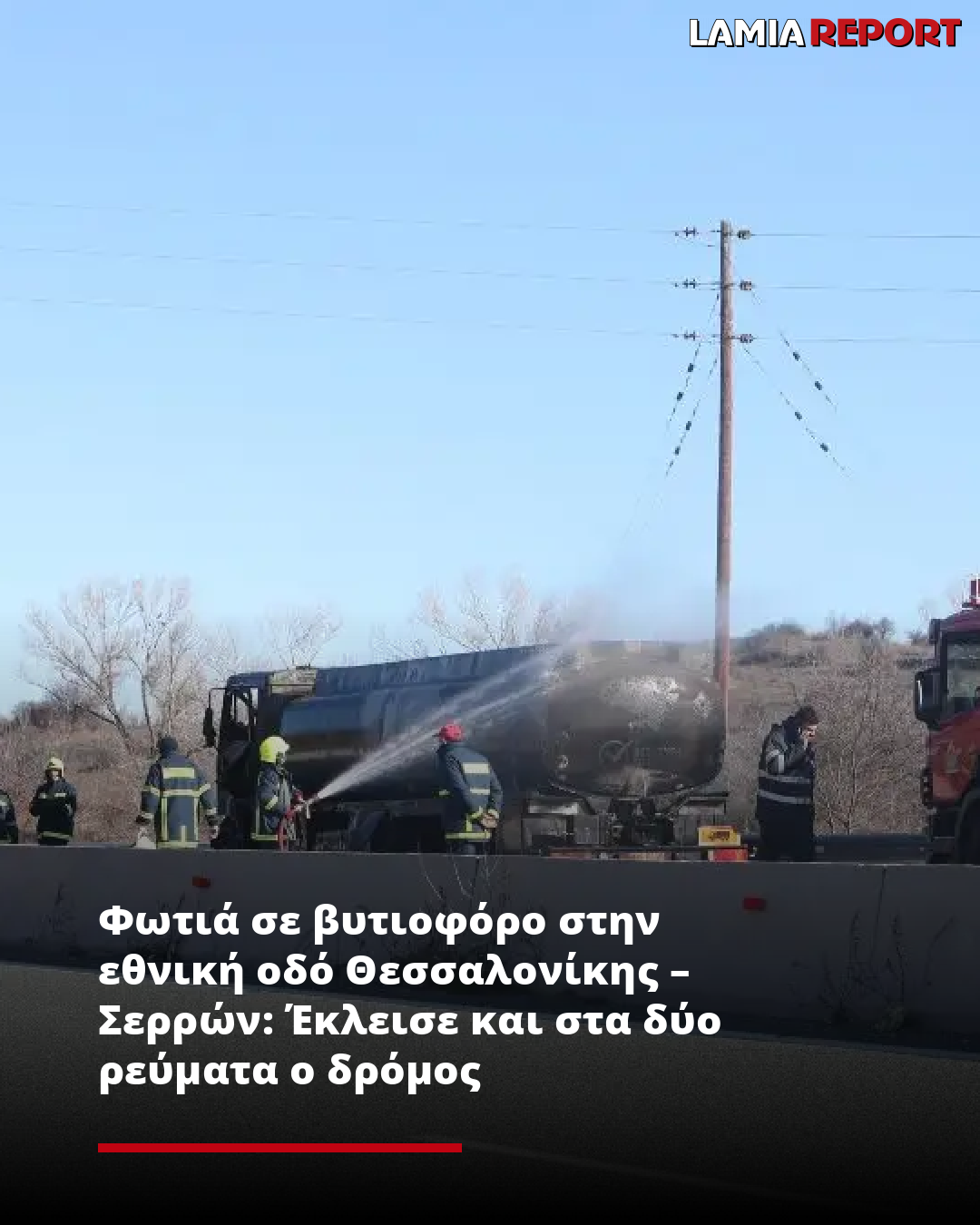 Φωτιά ξέσπασε νωρίτερα το πρωί της Τετάρτης 31.12.2025, σε βυτιοφόρο όχημα στην Εθνική Οδό Θεσσαλονίκης – Σερρών.