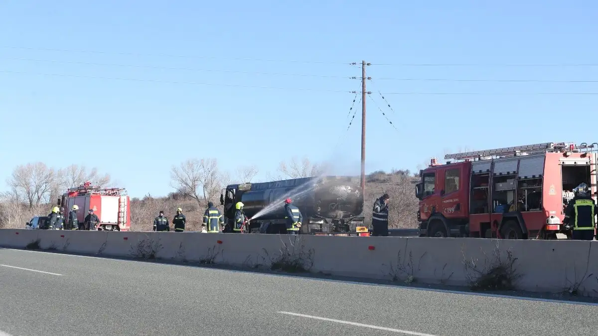 Φωτιά σε βυτιοφόρο στην εθνική οδό Θεσσαλονίκης – Σερρών: Έκλεισε και στα δύο ρεύματα ο δρόμος