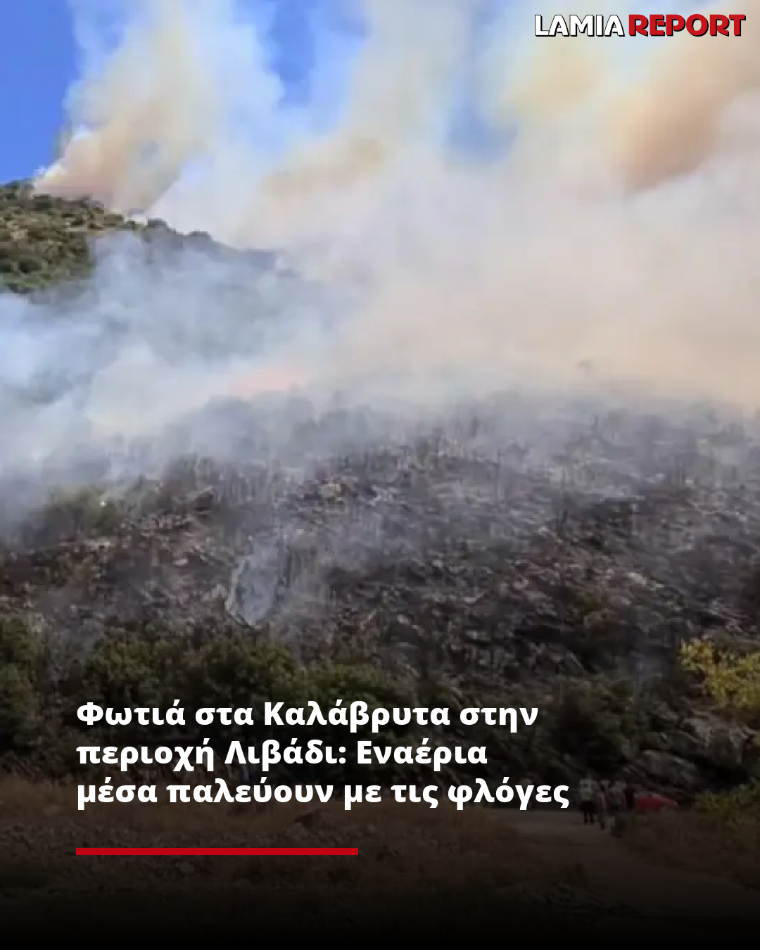 Φωτιά στα Καλάβρυτα στην περιοχή Λιβάδι: Εναέρια μέσα παλεύουν με τις φλόγες