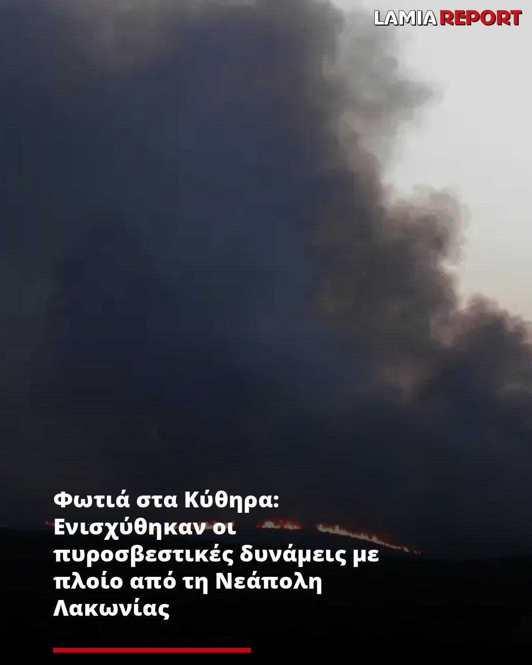 Επίσης, στα Κύθηρα καταφτάνουν με πλοίο από τη Νεάπολη Λακωνίας 15 πυροσβέστες με μία ομάδα πεζοπόρου και 4 οχήματα.
