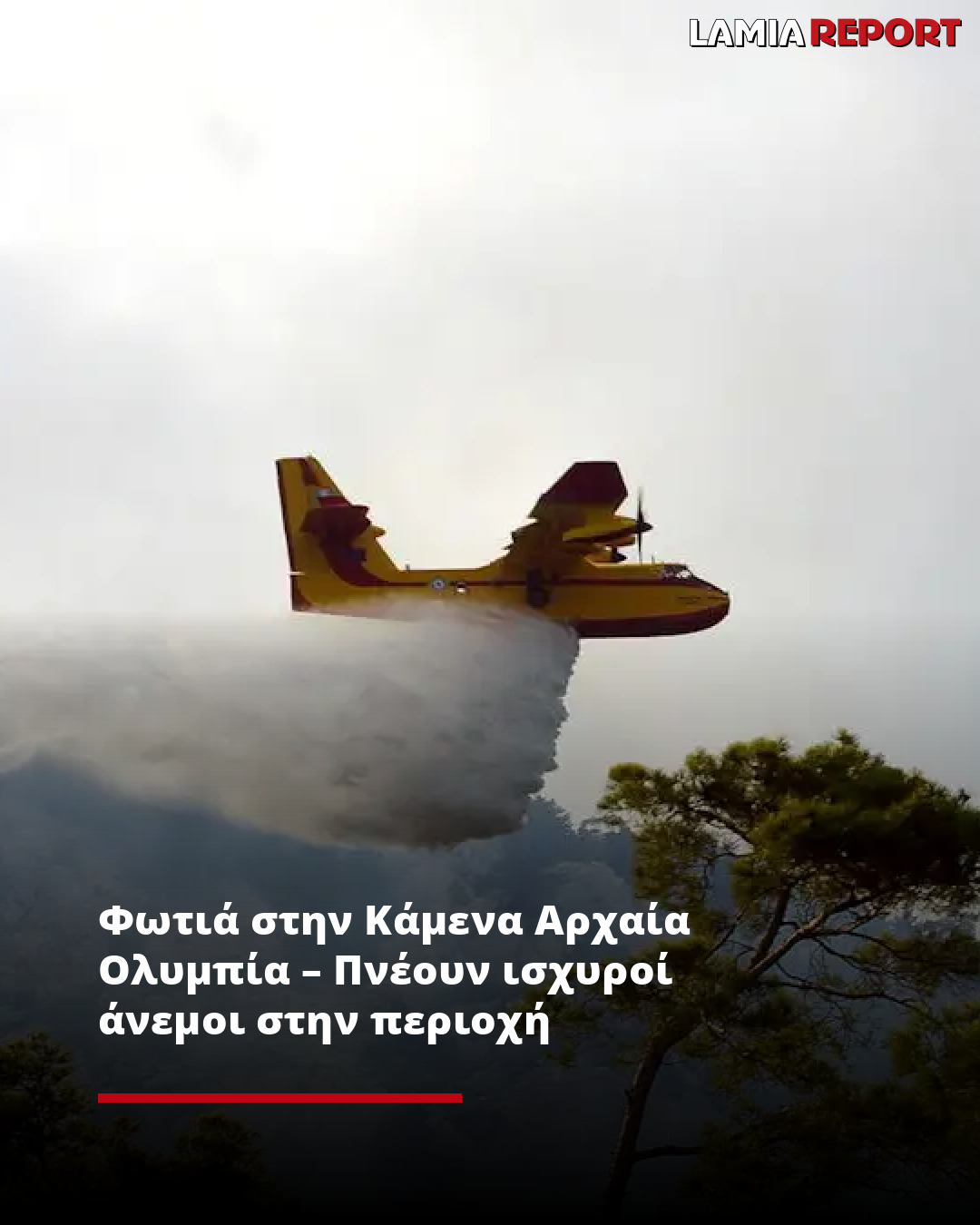 Φωτιά στην Κάμενα Αρχαία Ολυμπία – Πνέουν ισχυροί άνεμοι στην περιοχή