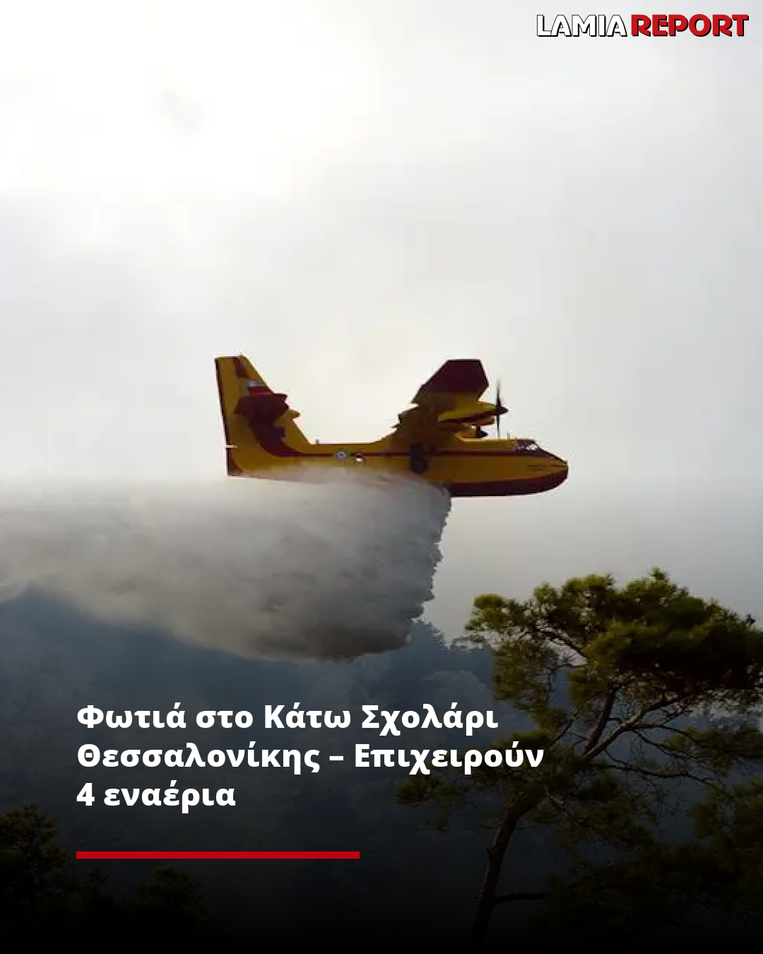 Φωτιά στο Κάτω Σχολάρι Θεσσαλονίκης – Επιχειρούν 4 εναέρια