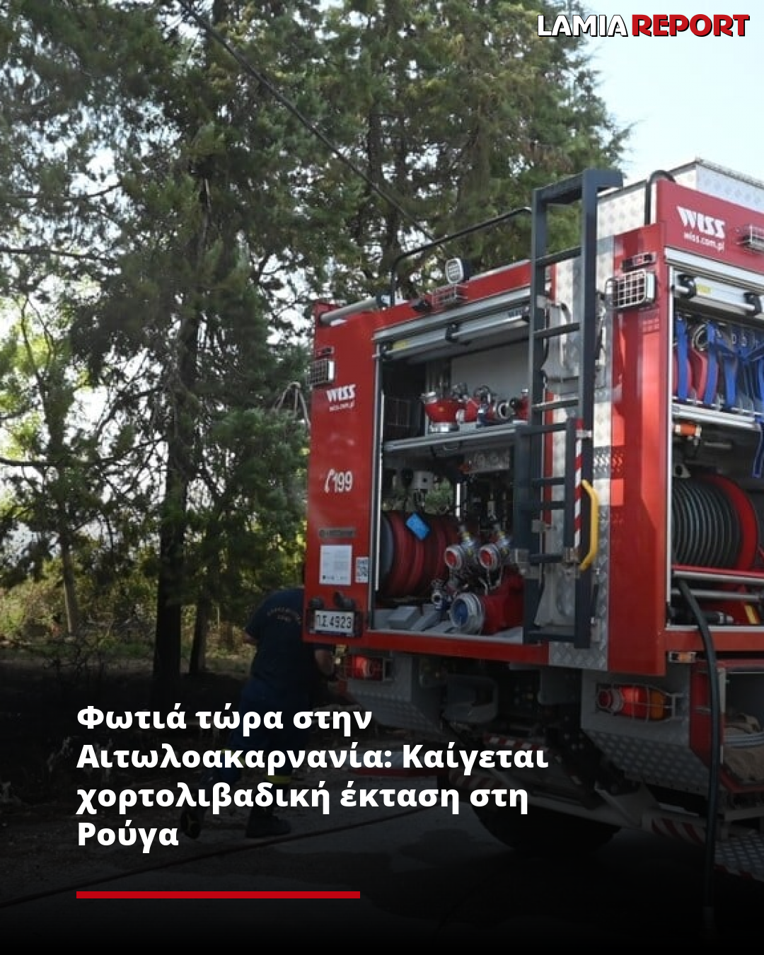 #Πυρκαγιά σε χορτολιβαδική έκταση, στην περιοχή Ρούγα Αιτωλοακαρνανίας. Κινητοποιήθηκαν 26 #πυροσβέστες, με 1 ομάδα πεζοπόρου της 5ης Ε.ΜΟ.Δ.Ε., 8 οχήματα και 2 Α/Φ.