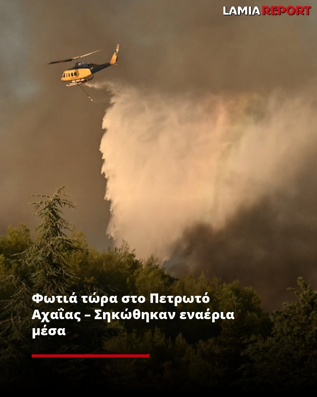 #Πυρκαγιά σε δασική έκταση στην περιοχή Πετρωτό Αχαΐας. Κινητοποιήθηκαν επίγειες και εναέριες δυνάμεις.